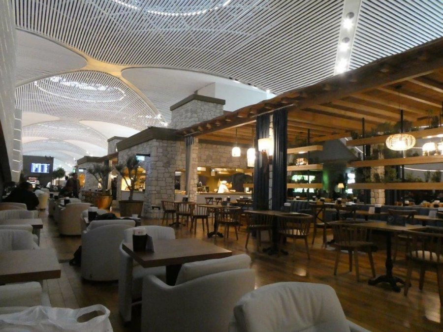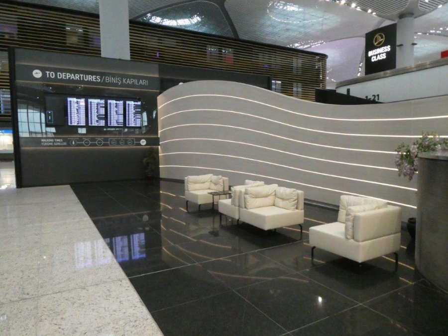 Väl inne på flygplatsen slogs vi av den höga takhöjden och arkitekturen som tänkt att spegla Istanbuls historiska kupoler. Den gav ett väldigt ljus och luftigt intryck. Det fanns ett flertal Taxfree butiker även om många ännu inte var öppna. Det fanns också ett flertal olika lounger att välja mellan. När vi frågade olika personer vilken som var bäst så framhöll alla att de var likvärdiga. Vi hade tyvärr inte tid att prova alla så framtida recensenter får utröna huruvida detta stämmer. Jag var dock inne på Miles & Smiles loungen och Business Class loungen och de verkade vara mer eller mindre lika både till både utformning och utbud.