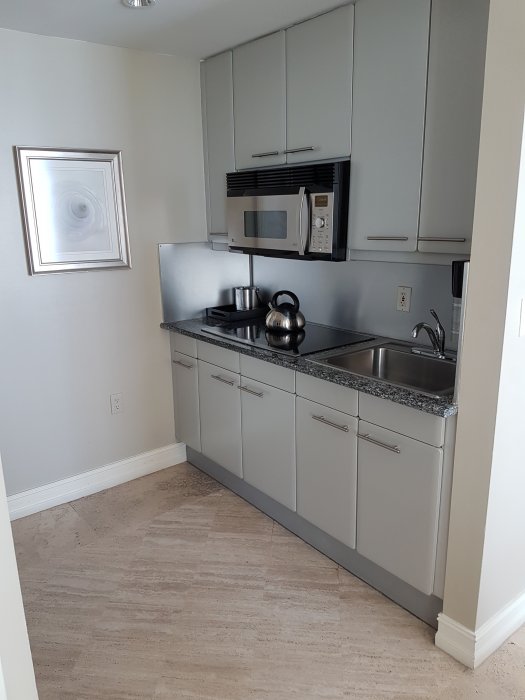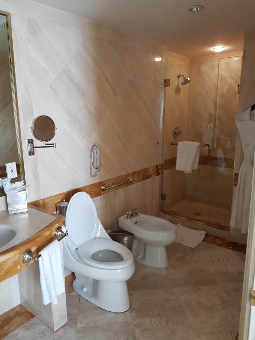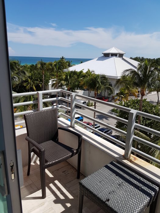 Tog en Über från hotellet vid flygplatsen dagen innan vilket fungerade utan problem. Detta hotell har man hört mycket om så förväntningarna är höga. Jag har i förväg försökt be om ett rum med havsutsikt utan någon lycka, får en "lägenhet" som har delvis havsutsikt på 5e våningen istället. Absolut inget fel på rummet men den minimala balkongen med halvtrasigt bord och lite havsutsikt andas inte direkt någon lyx. Rummet består av ett gigantiskt badrum, stort vardagsrum och ett mindre sovrum. Det finns även ett kök med micro, kyl, frys och spis. Det var dock ett tag sedan någon tittade i frysen, den var rejält frostig så isbitarna i ismaskinen kom inte ut.