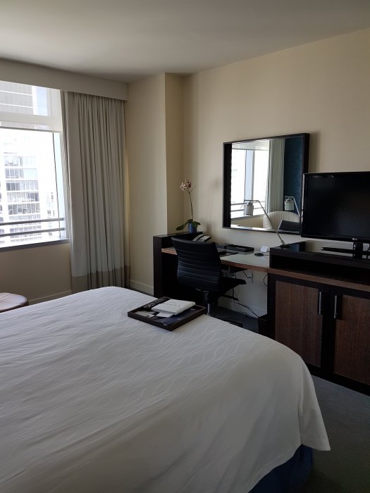 Conrad ska väl vara en kedja som generellt är bättre än "vanliga" Hilton. Här levererar de helt och hållet efter detta. Direkt efter att ha hoppat ur taxin blir jag visad till hissarna som tar mig till 25e våningen för incheckning. Jag hade valt ett rum på 22a våningen så det var bara att gå till de andra hissarna som tog en mellan våningsplanen för att komma till rummet. Ett stort rum med allt man kan önska sig och troligtvis den bästa duschen jag någonsin provat i USA, vet inte hur många gånger man har fått böja sig in under munstycket för att få vatten på huvudet på andra ställen.