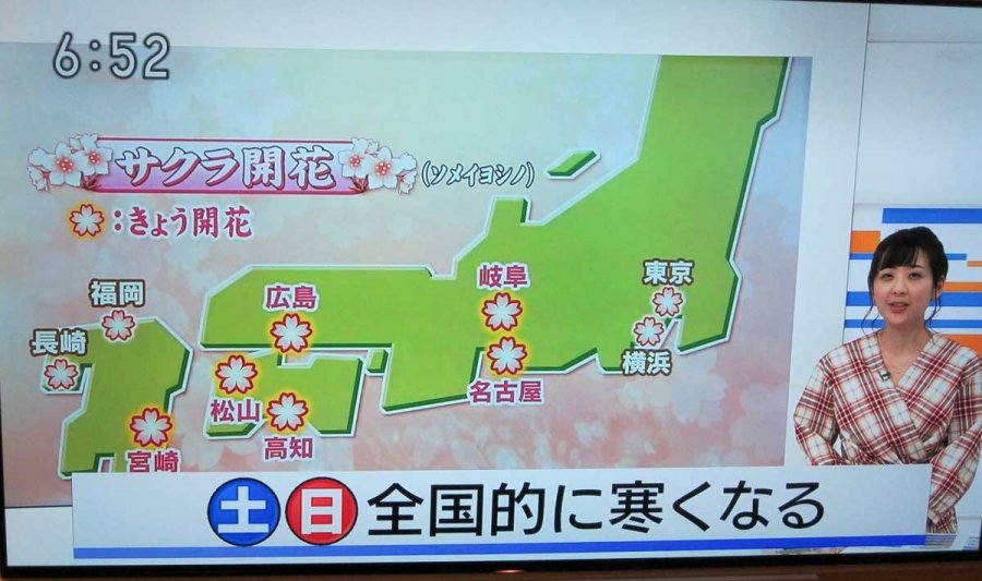 Det brukar vara i ca 2 veckor. Jag bor i Tokyo och kan rapportera att det börjat så smått på vissa ställen men att det nu är kallare igen (ca 7 grader idag) så det bromsar nog upp blomningen lite. Nästa helg är nog perfekt timing med full blomning i alla parker.