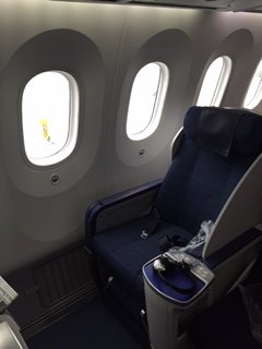 Boarding i tid och naturligtvis med en fungerande prioboardning. Då ska vi se vad min första ANA upplevelse blir. Leende crew och bockningar som förväntat. Gillade 787 kabinen – ljust och fräscht och väldigt rymligt. 2-2-2 konfig i C i fyra rader. Bara 8 pers i C varav 5+undertecknad hade varit på samma konferens.