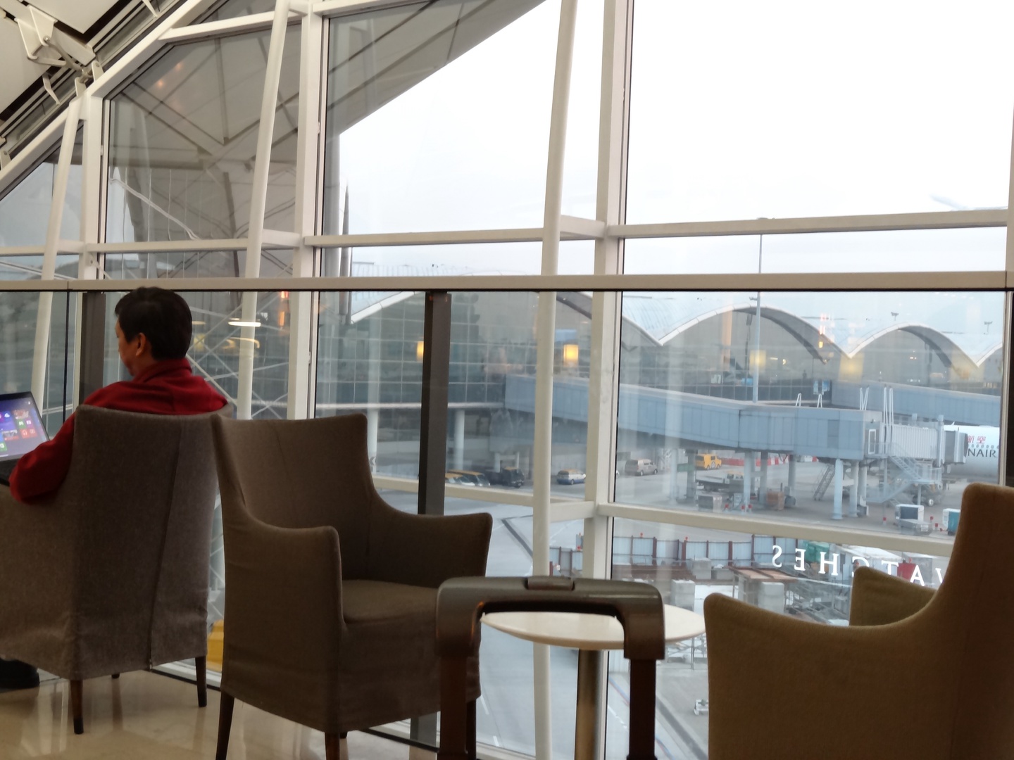 Sitter just nu i Den norra loungen och ska strax gå till gaten och borda planet som ska ta oss till Hong Kong