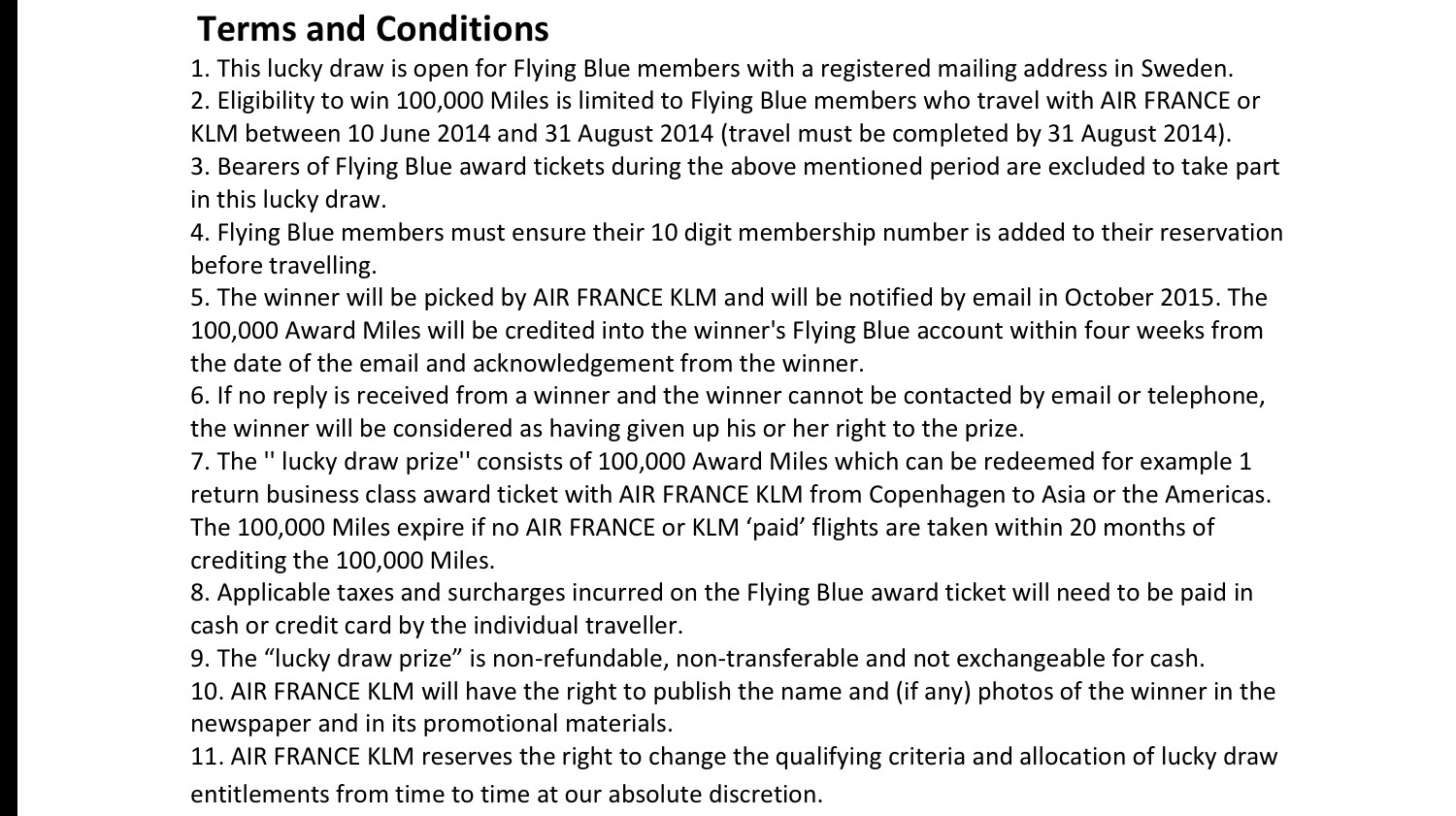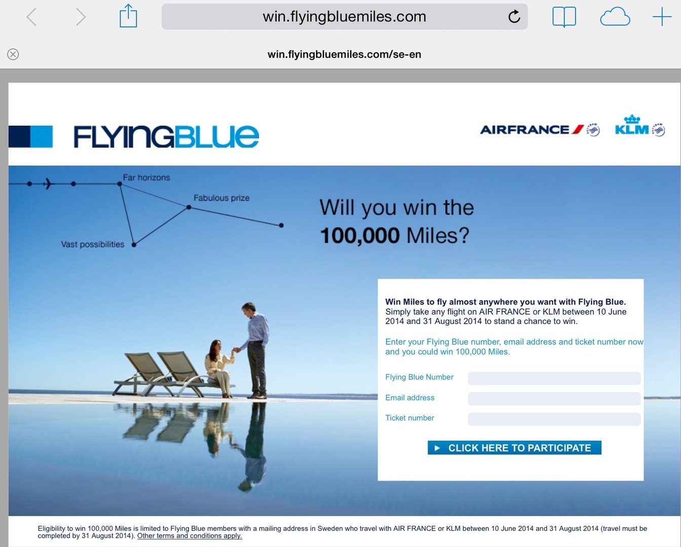 KLM kampanj 100.000 poäng lottas ut sommar 2014