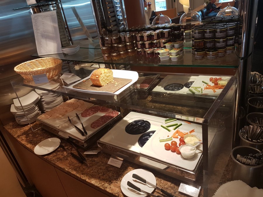 Väl på flygplatsen i Paris kunde jag inte ordna ett boarding pass i maskinerna och det fanns ingen Atlas Global service desk. Det fanns Air France service desks (flyget var Air France codeshare) i min terminal, men de var obemannade. Någon från ett annat flygbolag sa dock att det inte var några problem, jag kunde få ett boarding pass i gaten precis innan avgång. Detta lät lite konstigt tyckte jag, jag hade ju incheckat bagage och får de verkligen lasta ombord det om jag inte har checkat in minst en timme före avgång? Nåväl, jag fick snart viktigare saker att fundera på, nämligen vilken lounge skulle jag välja. Valet föll på Air Canada-loungen (Priority Pass) för jag trodde att denna skulle vara bra, liksom den i Frankfurt. Det var en bra bit att gå och när jag väl kom dit så stod det en lapp på dörren att de hade flyttat loungen ca 20 meter därifrån. Jag vet inte varför den hade flyttat, men man kan ju hoppas att den ordinarie loungen håller på att renoveras? Jag kom till loungen strax innan 13:00 och loungen stängde 13:30 och pga detta var flera av matfaten tomma och jag kan tycka att det är lite dålig stil att de inte fyller på trots att det är nära stängningsdags. Loungen var betydligt sämre än motsvarade lounge i Frankfurt och jag hade nog inte stannat mer än 30 minuter även om loungen hade stängt senare.