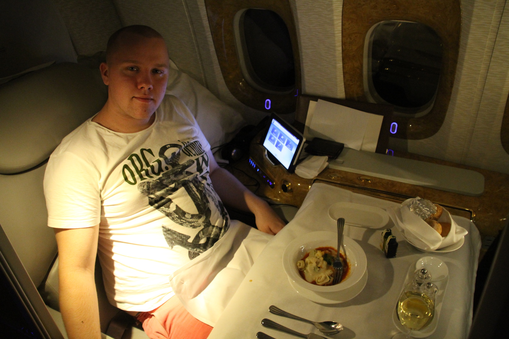 Äh ska ju inte göra någon besviken så skippar sömnen och laddar upp lite bilder från flighten EK408 mellan KUL-MEL. Vi lyckades med de ultimata att få upp min vän till mig i first från economy. Dock med lite mindre privilegier i service. Han fick sitta i sätet, serverades Dom Perignon samt andra drycker. Dock ingen mat eller sånt. Han fick även sitta kvar under landning och avstigning fick vi en egen brygga att gå av på samt fast track kort :)