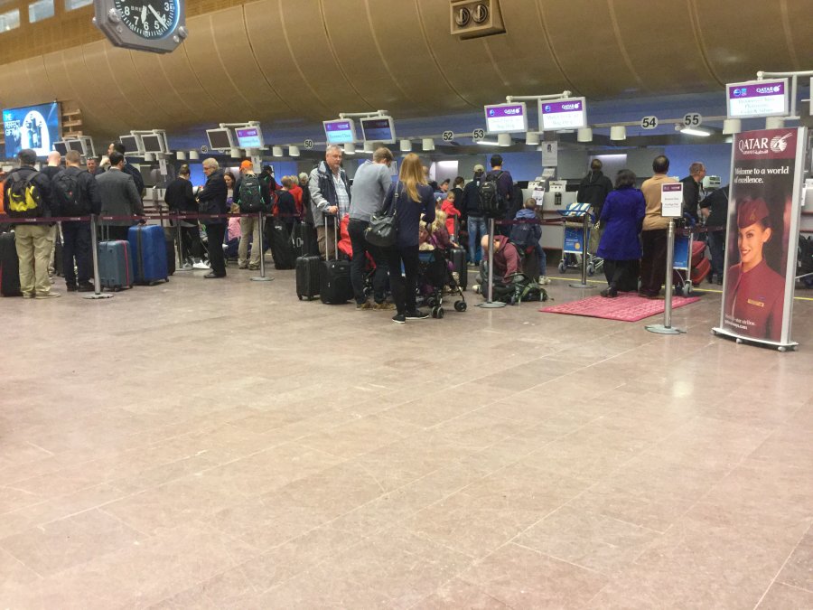 Check-in va riktigt befolkat, incheckningen tog 15 min med kön och processen..