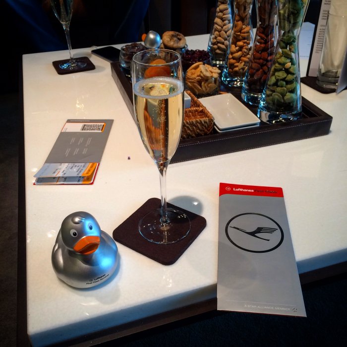 Slappar med lite Champagne efter lunch. Fick en badanka i välkomstpresent av vår personlige assistent. Överväger om man ska ta ett bad eller en tupplur. Hmmm... Tuffa val man ställs inför.