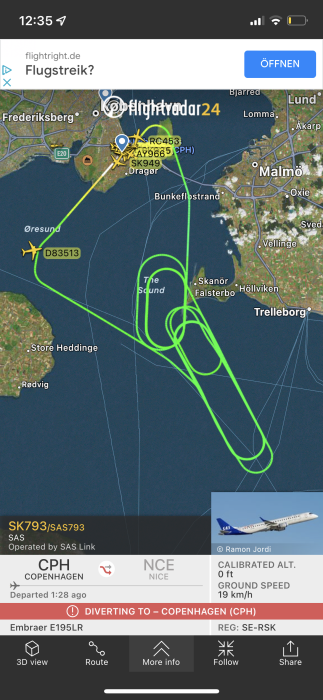 En SAS AIrbus 321 (LN-RKI) fick problem med noshjulet vid landning i Köpenhamn idag 7/11, enligt en skribent på norska Flyprat, som var med ombord.