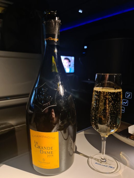 Bifogar lite bilder från TPE-BKK flighten. Veuve La Grande Dame 2008 serverades ombord.