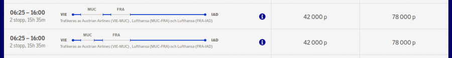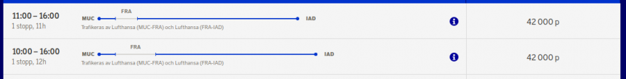 men det dyker inte upp några platser om man söker MUC-FRA-IAD eller FRA-IAD.