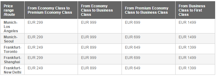 För uppgradering från economy till business blir det 1331 - 409 = 922 EUR vid bokning, men 999 EUR "cash upgrade". Ren förlust