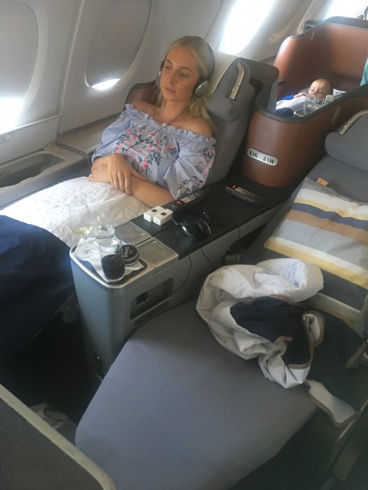 Några tips? :) Att kunna fälla sätet helt platt låter ju helt klart trevligt. Att få några timmars sömn på flygningen är nog det som är viktigast för oss.