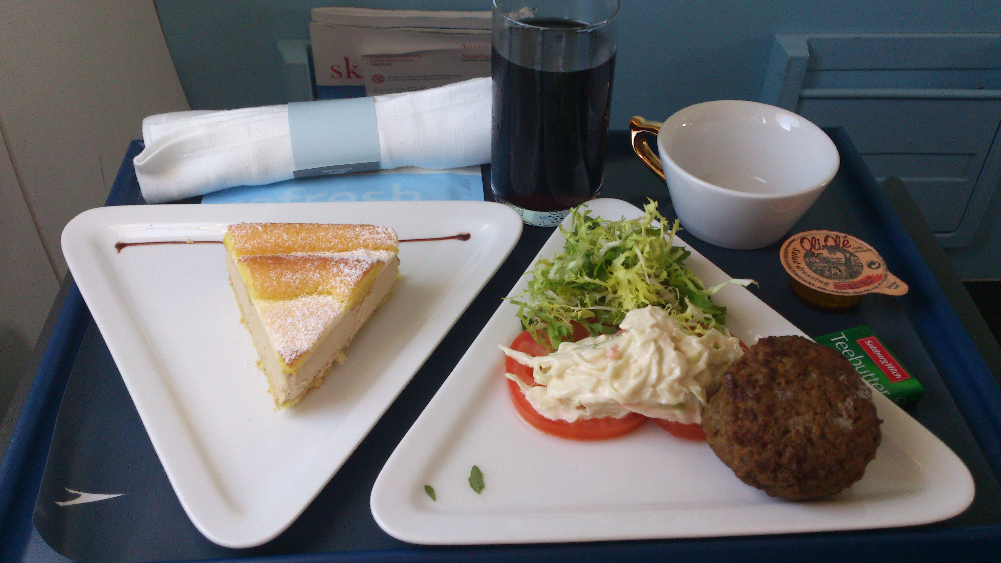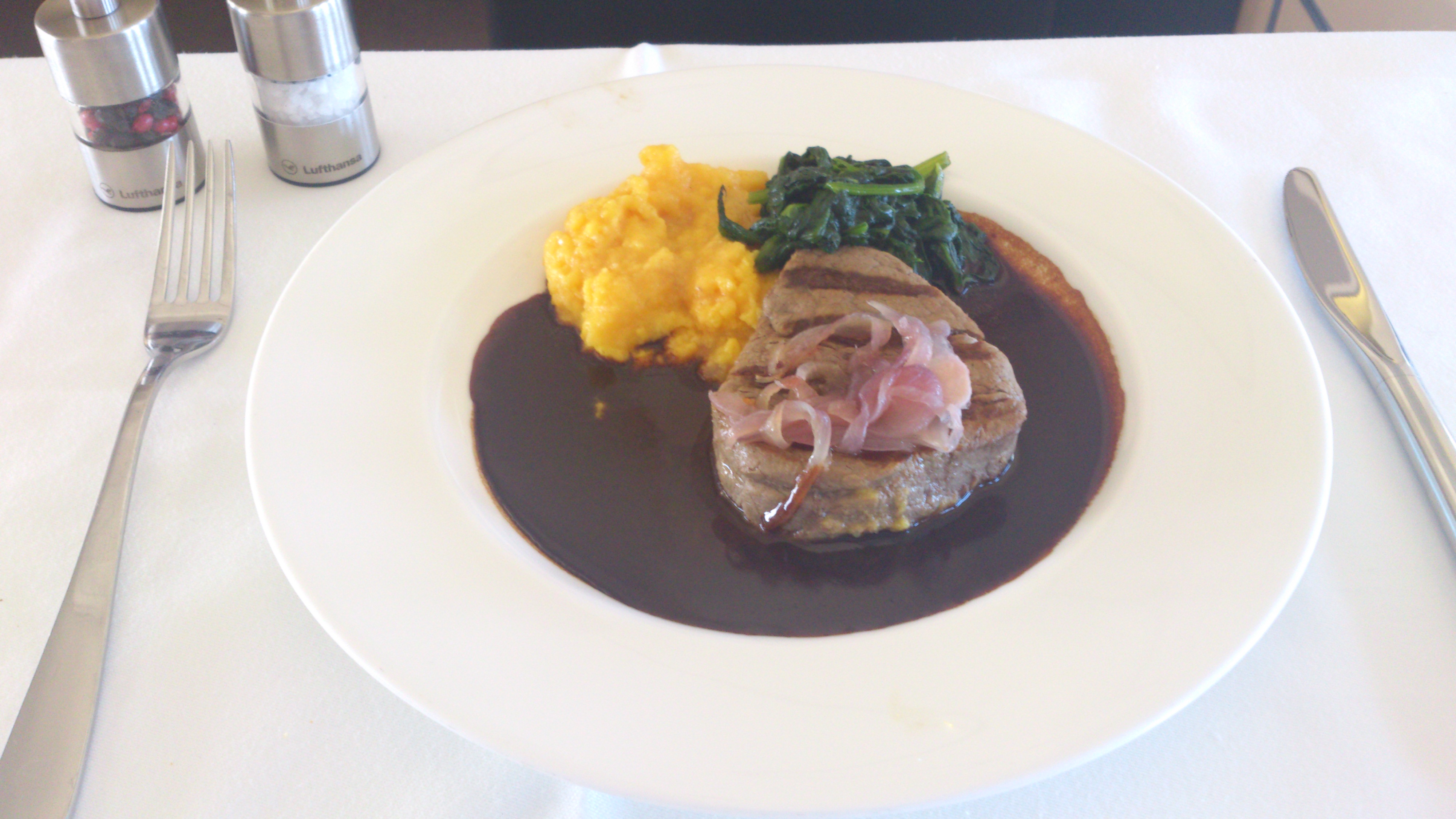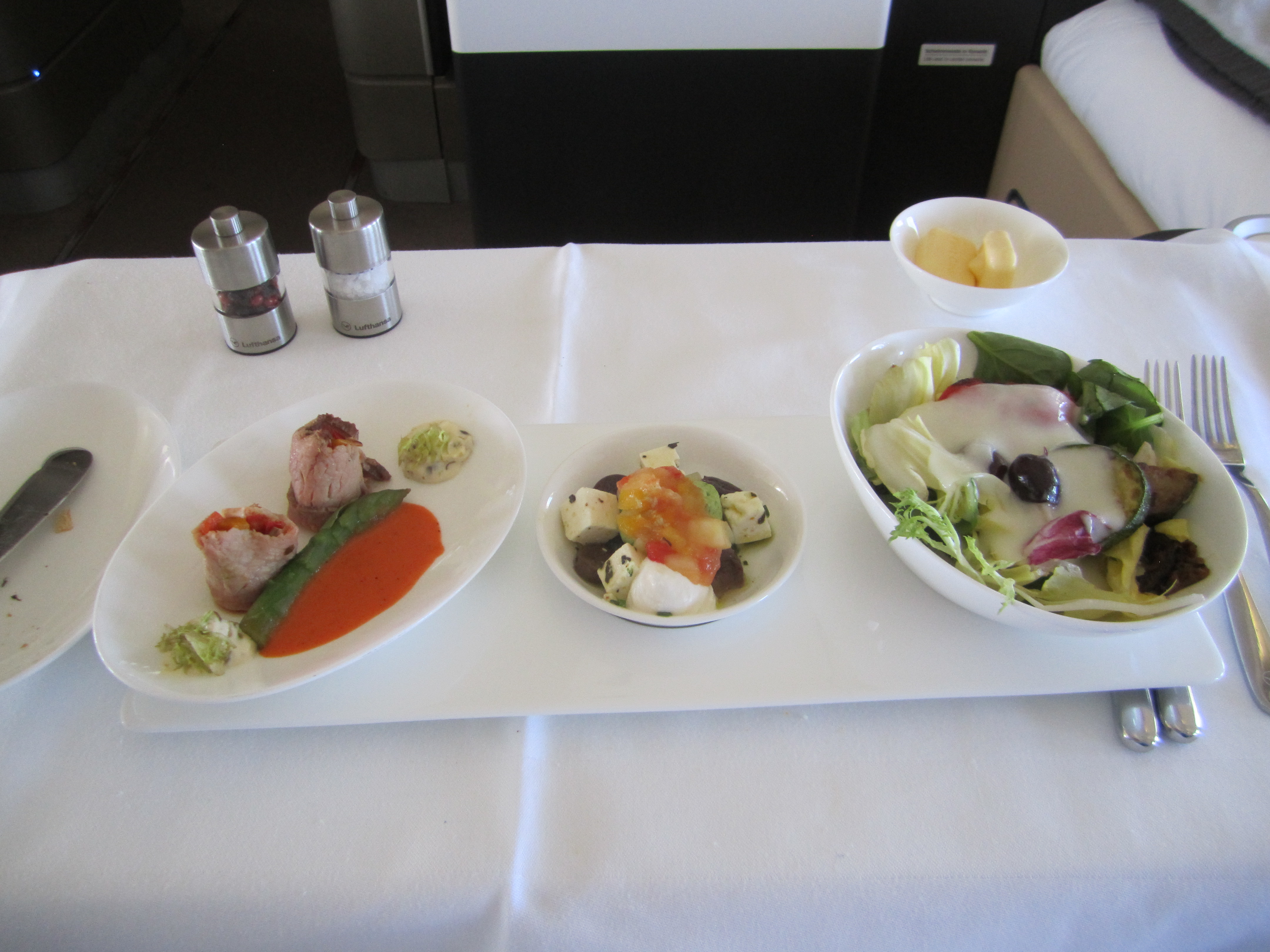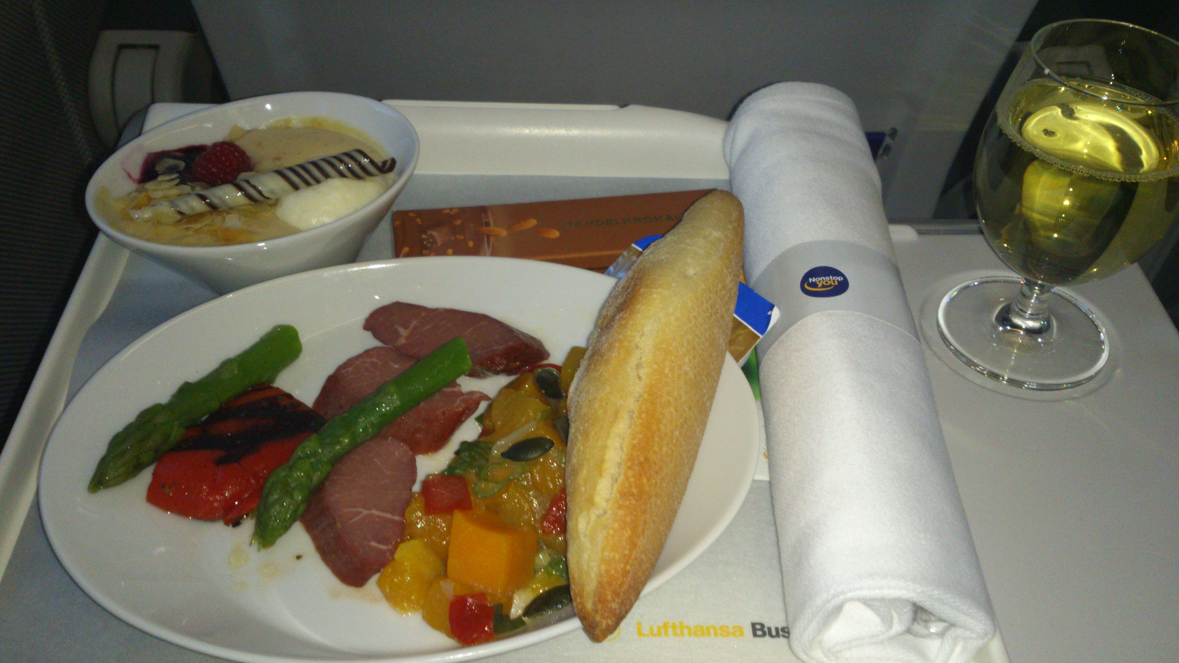 Väl ombord överraskade Lufthansa mig väldigt positivt. Första gången som jag blev tilltalad med ”Mr Palmen” ombord. Har läst och hört en hel del om andras erfarenheter av business med Lufthansa inom Europa och hade väl inga högre förväntningar, mat och dryck smakade dock riktigt bra och de var flera gånger ute i kabinen för att erbjuda påfyllning och se till så att vi som reste i business hade det bra.