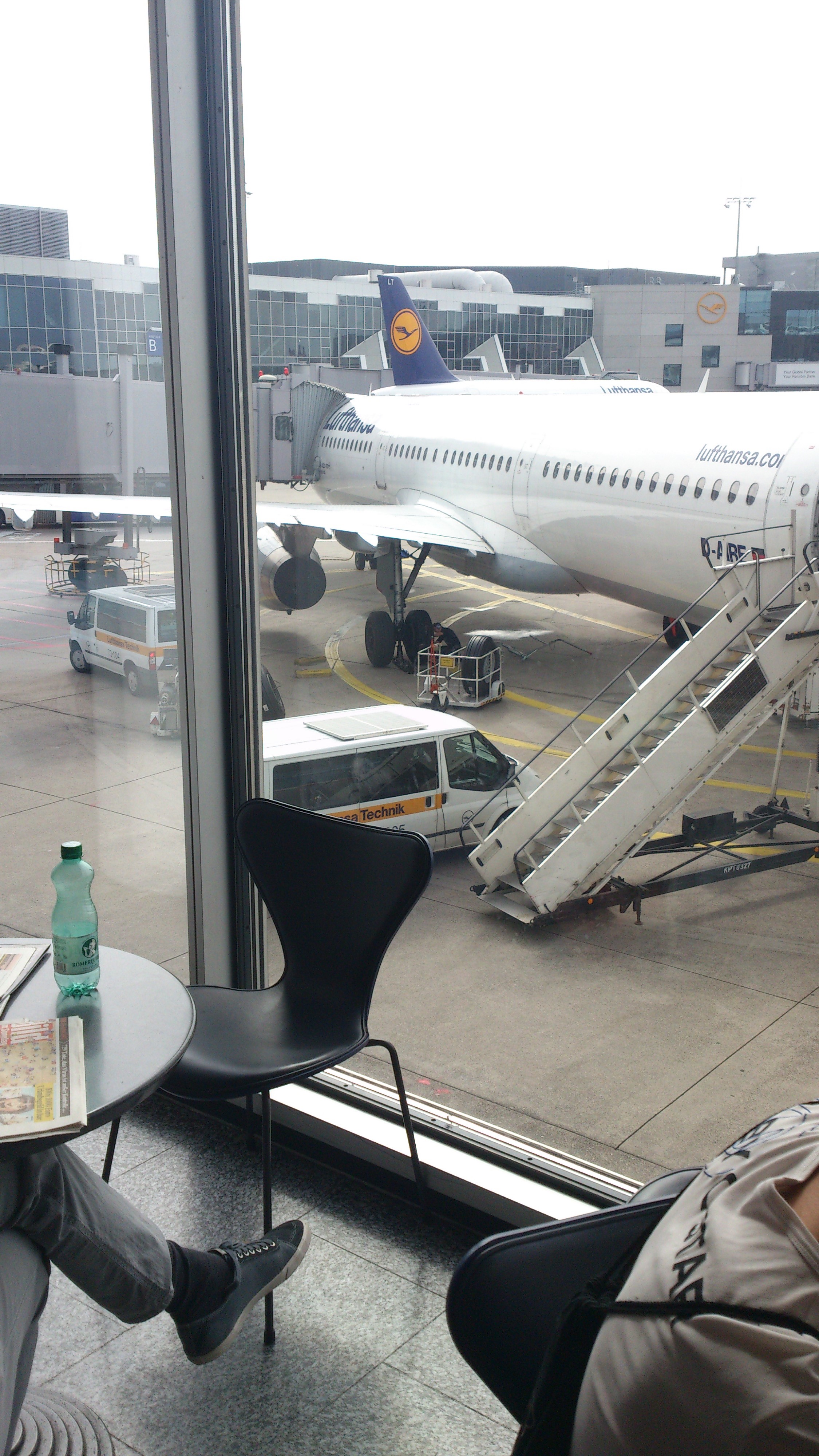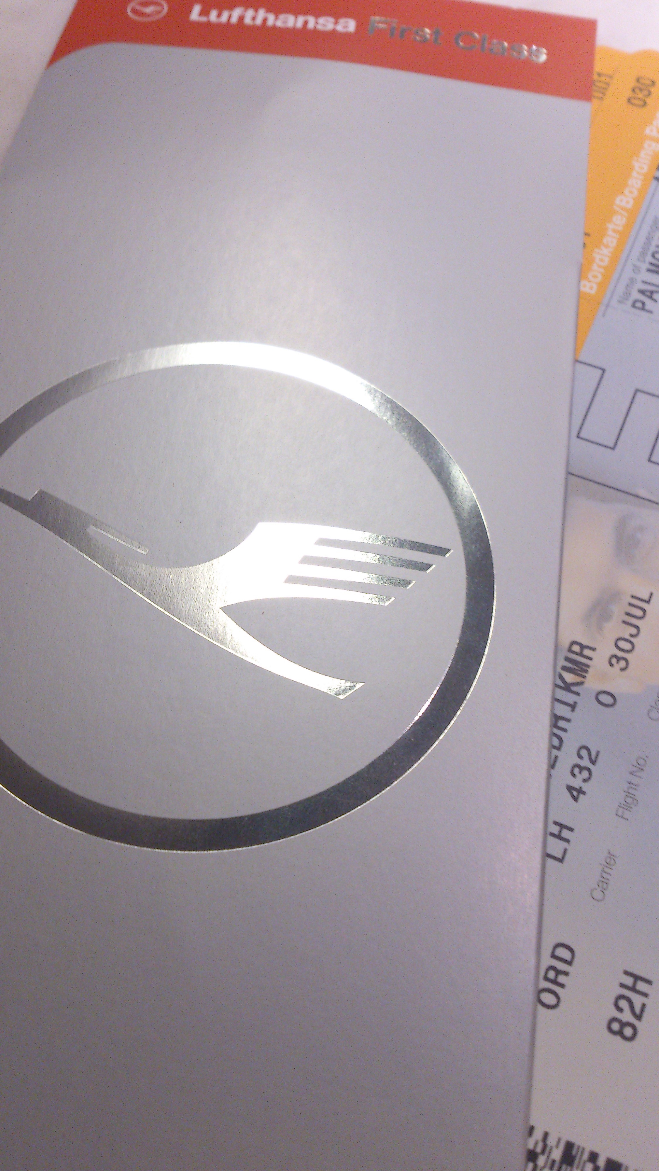 Tog en taxi från hotellet vid 16-tiden ut mot flygplatsen. Nu började det dock uppstå lite problem när jag väl kommit fram. First-incheckningen användes även av StarGold vilket gjorde att det var en hel del som inte reste i First som stod och köade. När de 3 kvinnorna med 8 väskor checkat in så frågade dock personalen om det var någon som skulle resa i First av alla i kön, jag var den enda First-resenären så jag fick gå förbi alla nadra. Väl vid incheckning var det något som inte stämde, agenten kunde inte checka in mig och fick gå och prata med någon supervisor som även hon försökte men det fungerade inte. Började bli lite orolig över vad problemet var. Efter att de försökt i nästan 10 minuter blev jag ombedd att gå till ”Lufthansa Ticket Office” eller vad det nu var och att de skulle hjälpa mig. I denna kö fick jag vänta i närmare 20 minuter innan det blev min tur och hon tittade bara frågande på mig vad felet var, förklarade att något var fel och de inte kunde checka in mig. Efter någon minut hade denna kvinna checkat in mig utan problem, fick dock gå tillbaka till First-incheckningen igen för att få bagaget taggat och mina boardingkort. Det gick inte att ta miste på att de skämdes när jag kom tillbaka ca 25 minuter senare för att få mitt boardingpass och lämna väskorna. En massa ursäkter fick jag, men tycker ändå inte att det är ok någonstans att det ska ta nästan 45 minuter att checka in en förstaklass-resenär. Och varför är det samma kö för Star Gold som för First-resenärer?? Om det inte är kö till First så kan de självklart ta och checka in någon från en Star Gold kö, men att det ska vara samma kö känns lite fel enligt mig. Agenten vid First-incheckningen följde mig dock till loungen och lovade att komma och hämta mig när det var dags för boarding.