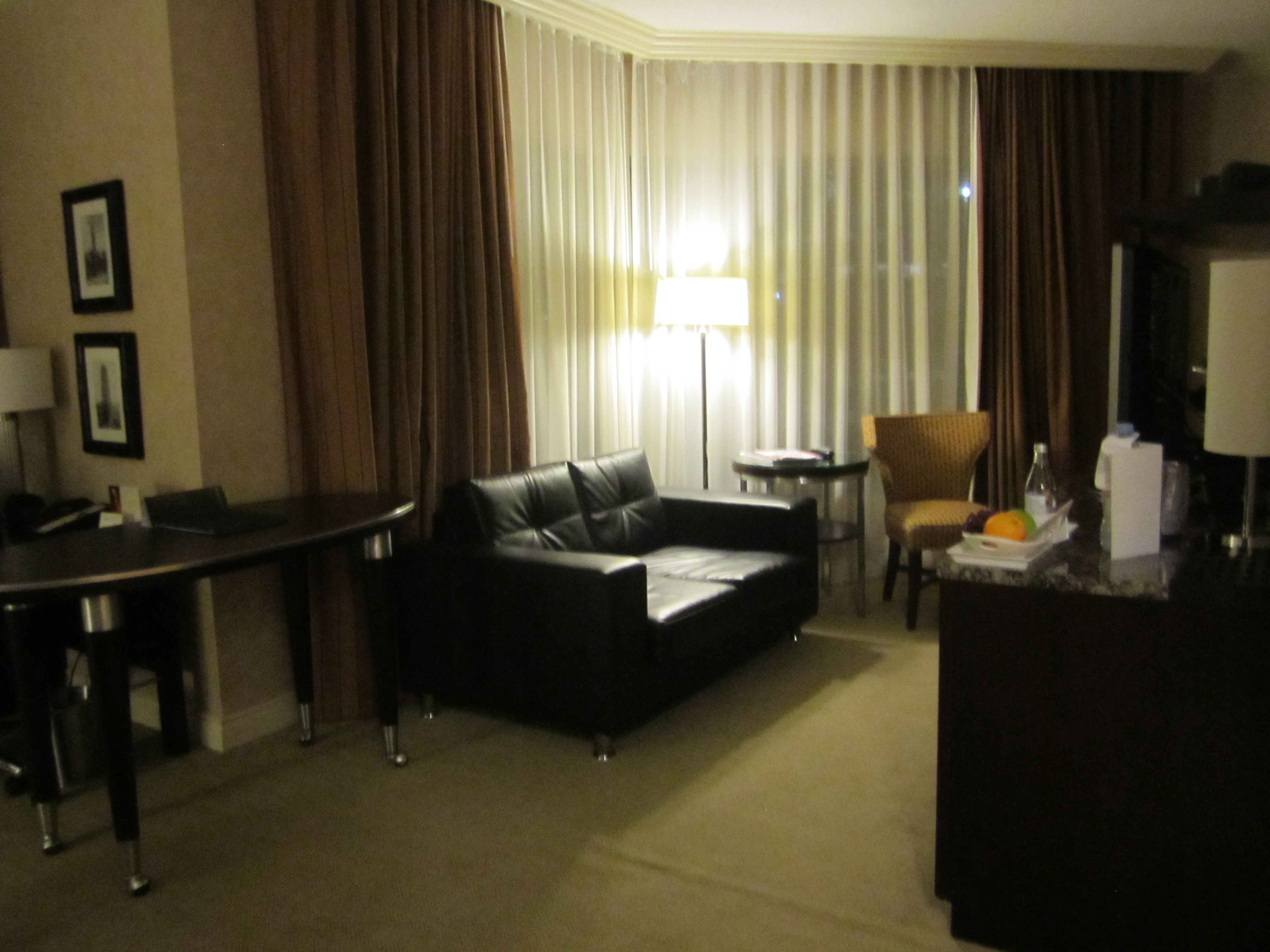 Checkade in en bra bit efter midnatt och blev varmt välkomnad i receptionen, hade innan resan bett om att få mitt Ambassador tillagt i bokningen och ”slå ihop” bokningarna. Mannen i receptionen såg väldigt förbryllad ut när min hotwire bokning hade givit mig en tripple upgrade, förklarades dock när han såg den andra bokningen jag hade för sista två nätterna. Blev tilldelad en hörnsvit på club-level. Egen lounge där frukost serverades och senare på dagen även drinkar och tilltugg.