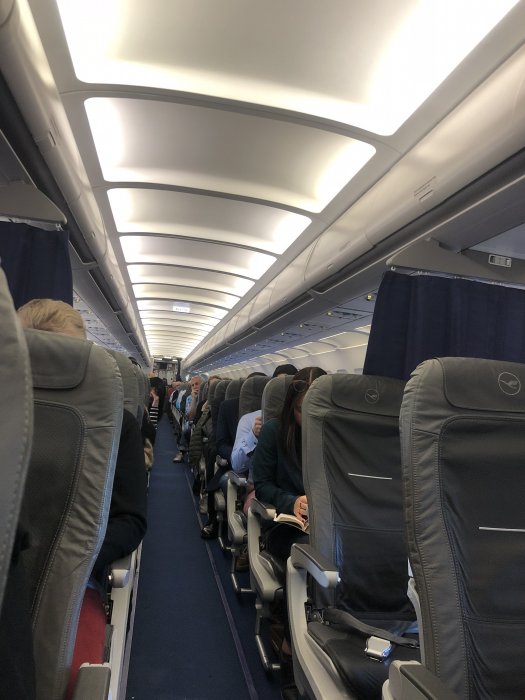 Måste nog gått om varandra på ARN imorseOmbord LH801 nu. Fem rader business. Hyfsad flygning trots liten försening ut pga sent inkommande.