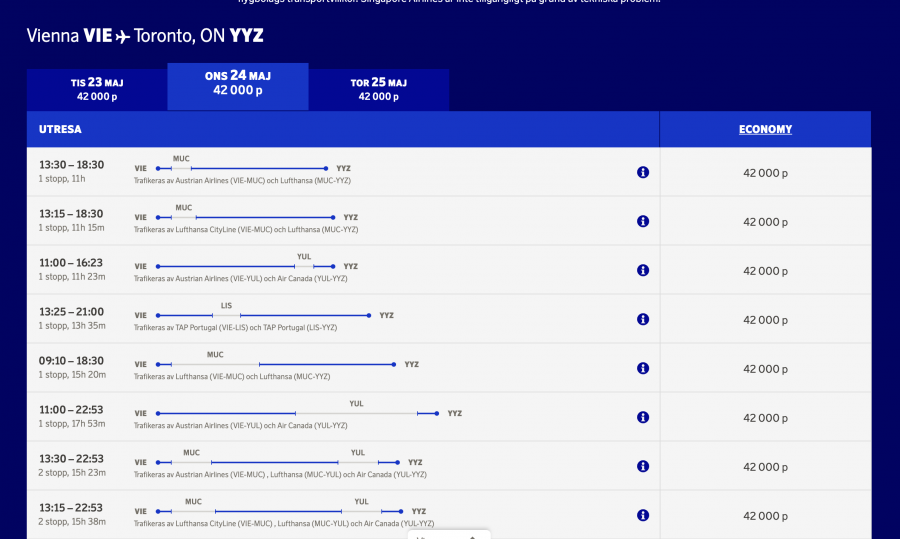 Så hittar den inte ens direktflighten med Air Canada...