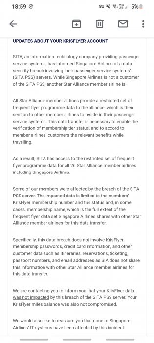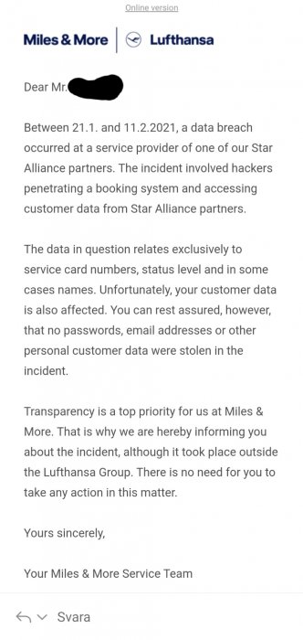 Mail från KrisFlyer - SITA PSS Server Hackad