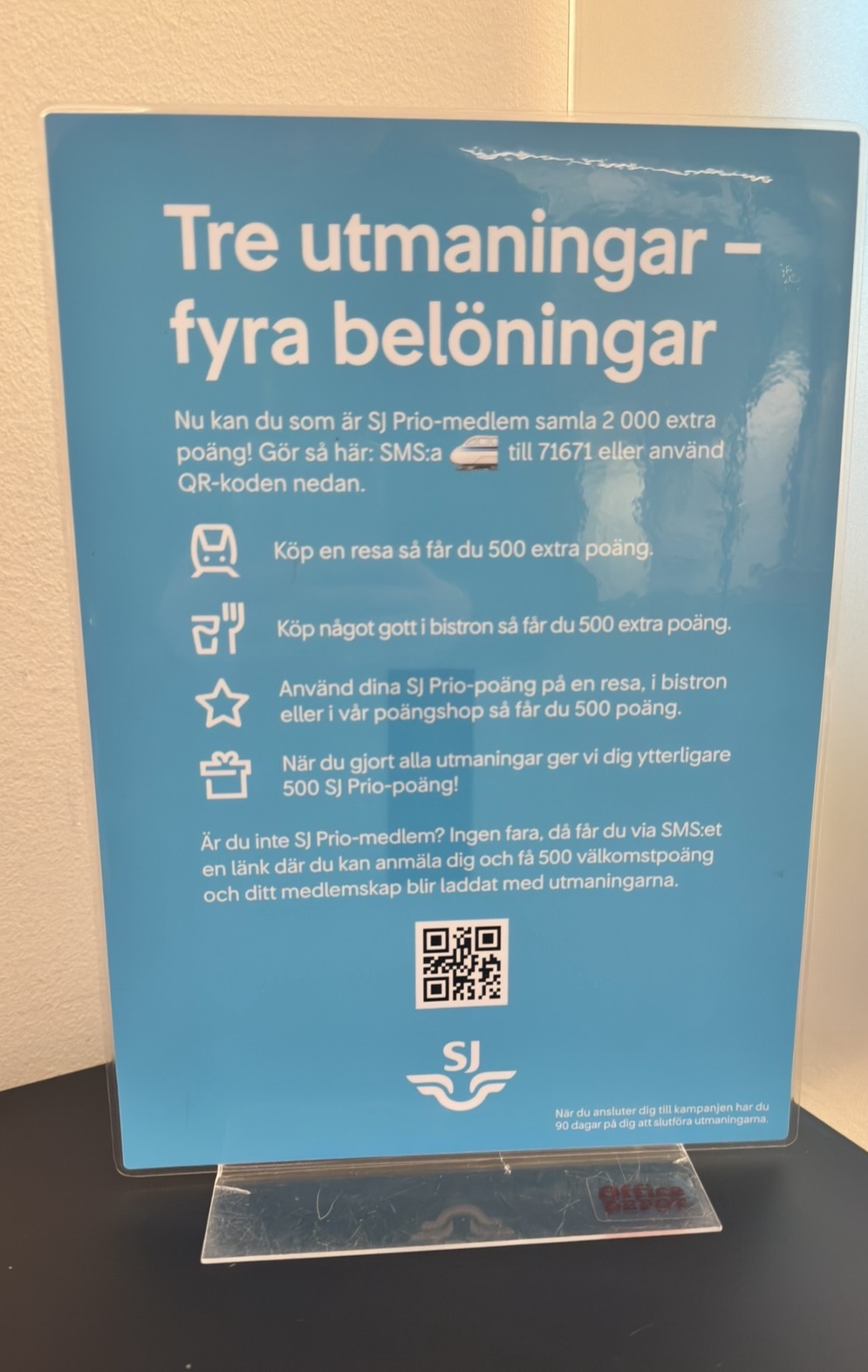 Vet ej, utmaningen triggade min närmsta resa som va samma dag jag registrerat mig för kampanjen men hade bokat sedan tidigare, så köpte bara något i bistron för pengar och sedan för poäng för utmaningen