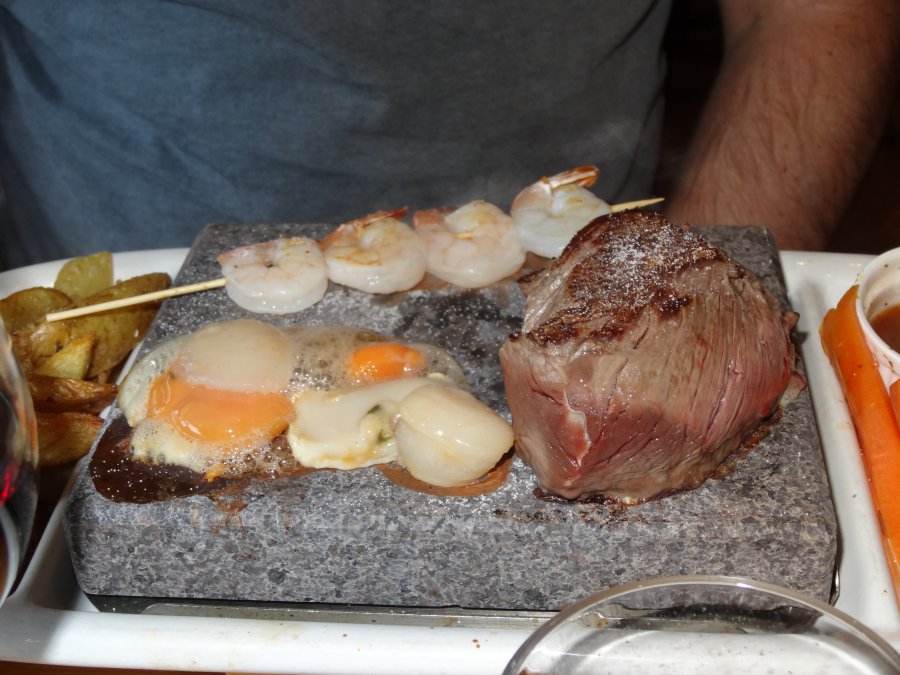 Kunde inte riktigt bestämma mig för varmrätt, har knappt käkat fisk på 4 veckor och CX "ombordris" (de kokar ombord) är riktigt gott. Men köttet (är ju en kött-kille), brukar vara riktigt bra här och dessutom gillar jag mer rödvin än vitt (förutom bubbel