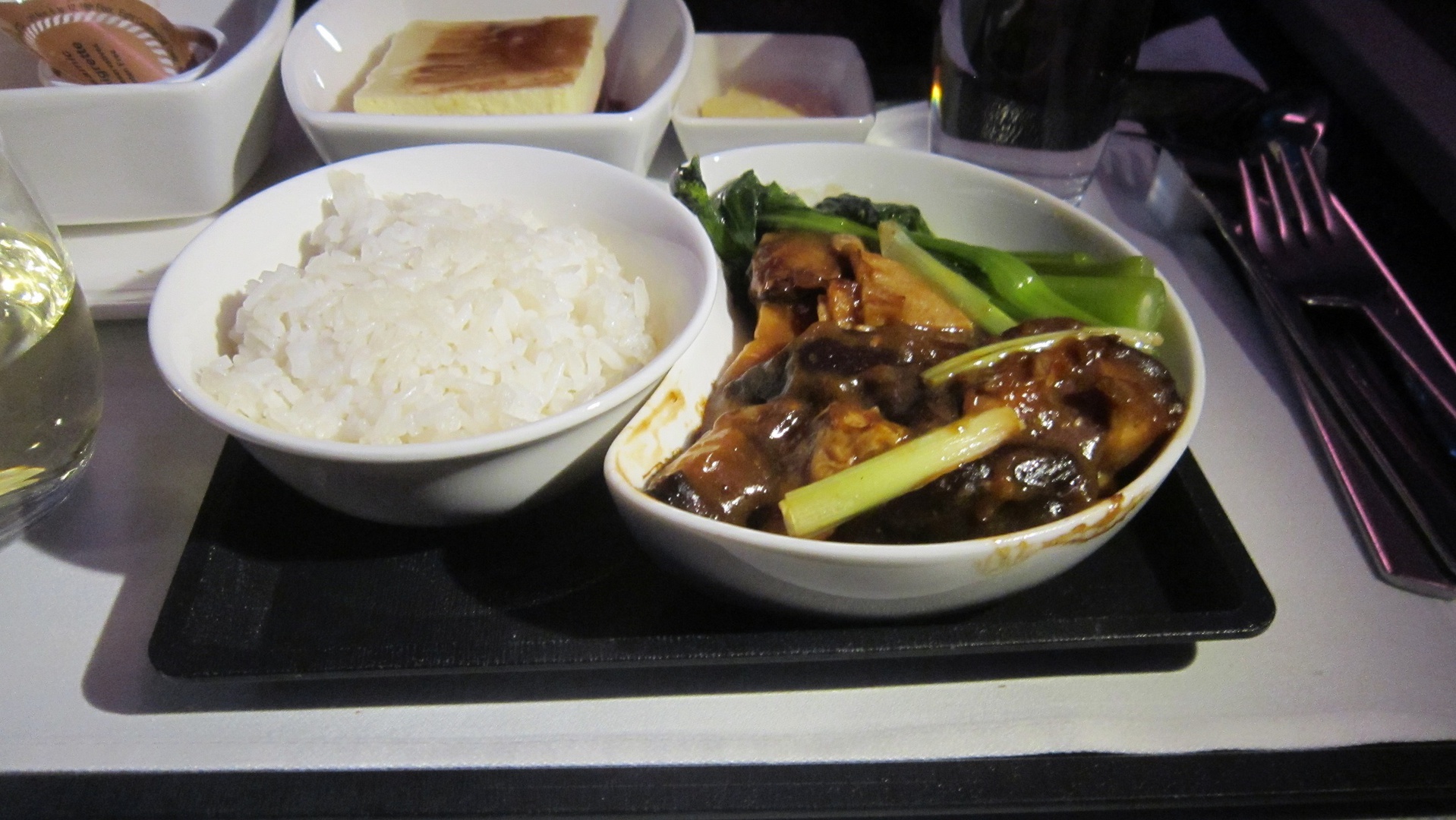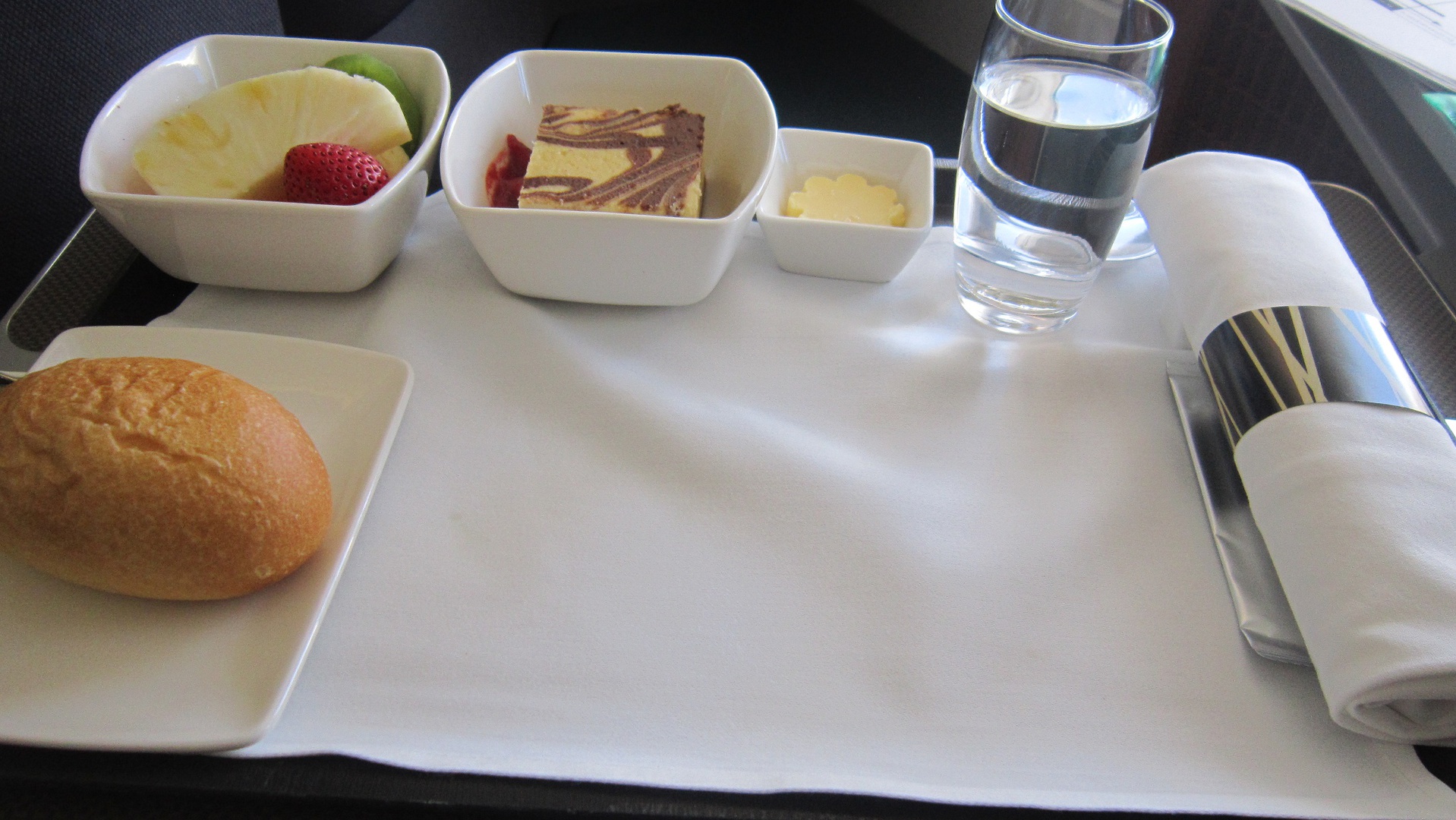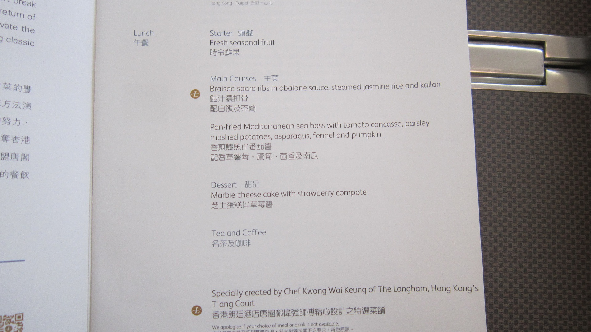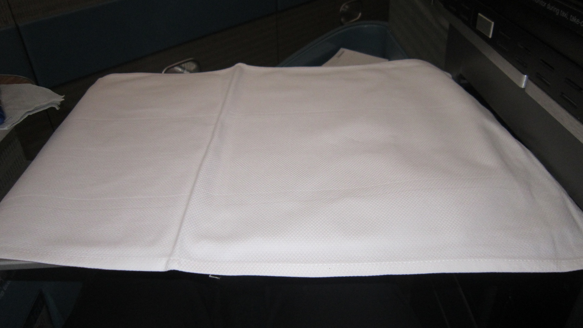 En annan liten detalj som skiljde och som visade att man hade tämligen gott om tid på den här flighten var att bordet försågs med en vit duk. Misstänker att detta moment hade rationaliserats bort för att spara tid på flighten mellan TPE-HKG.