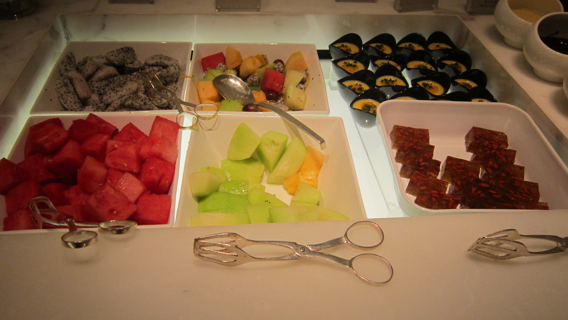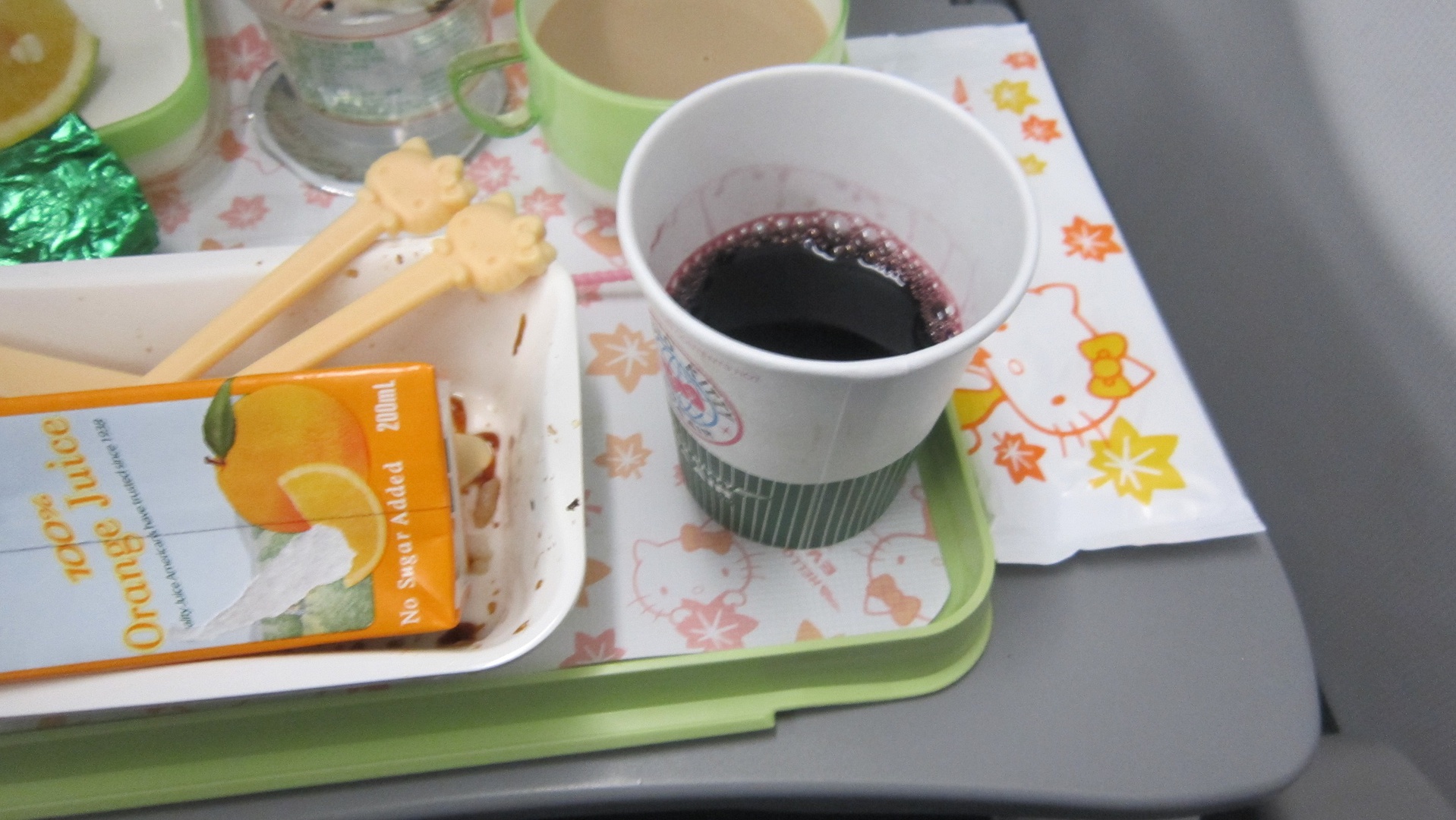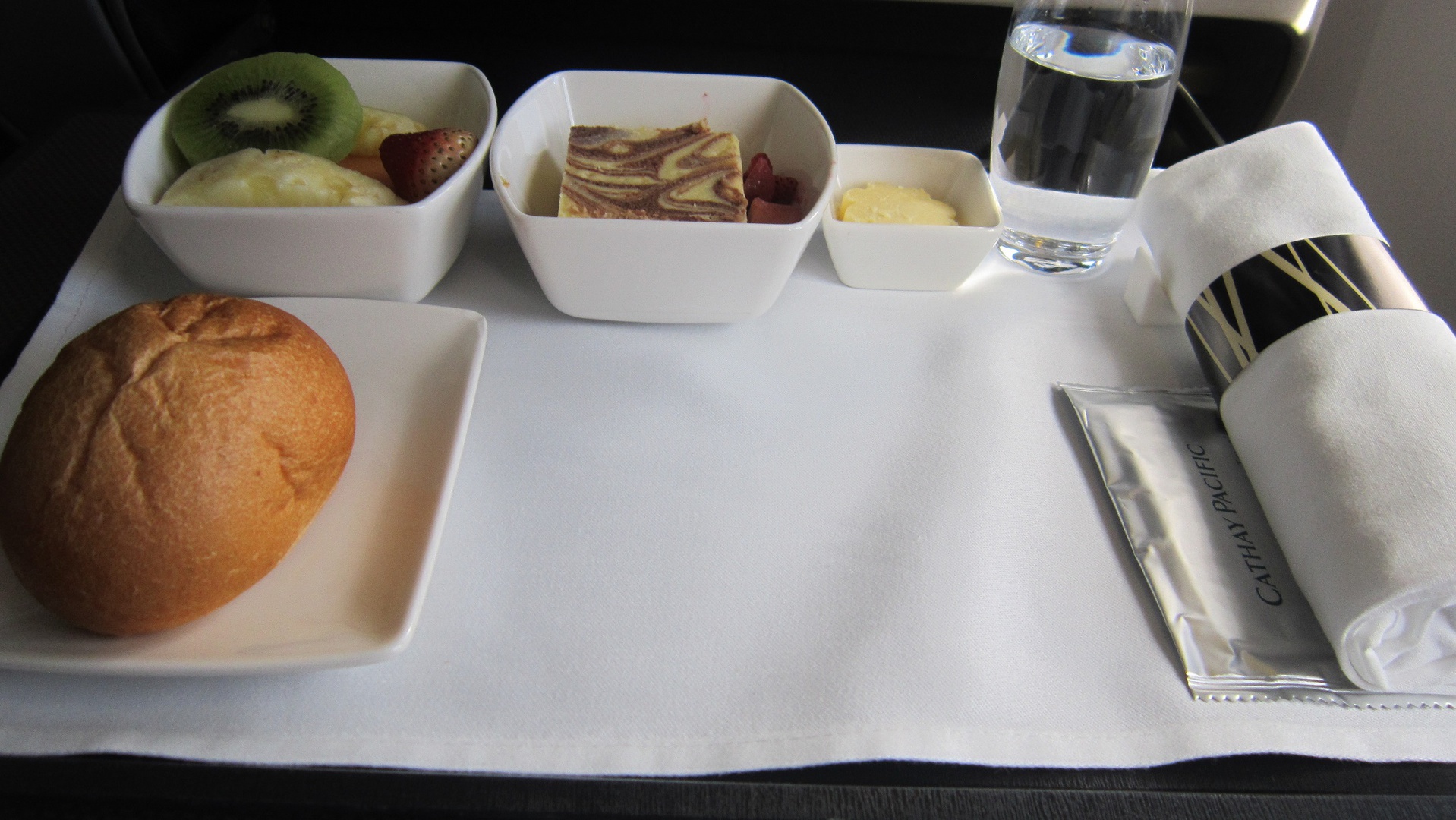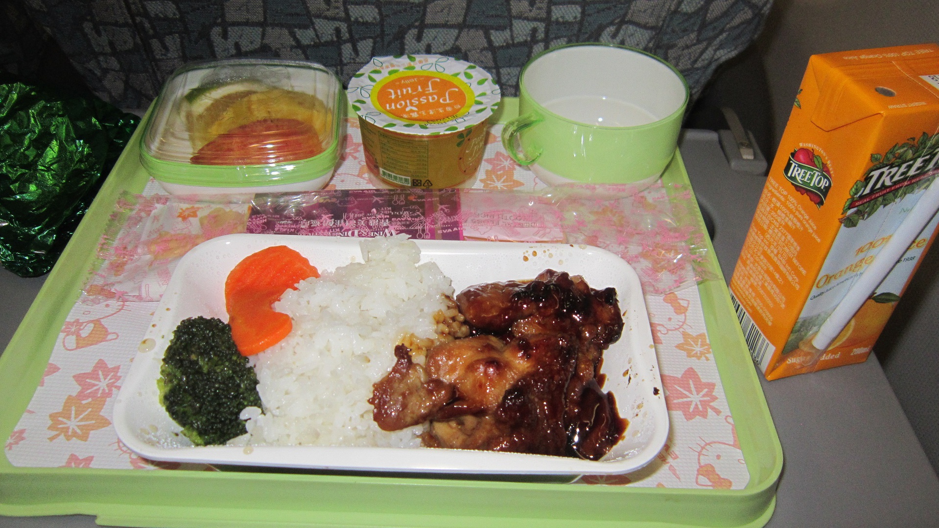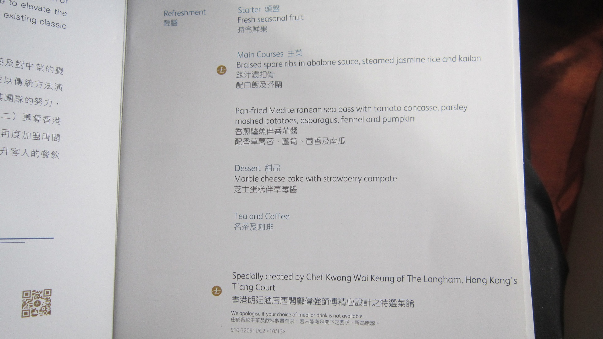 På flygningen serverades det ”gamla” vanliga, färskt frukt som förrätt och två rätter att välja på till huvudrätt. Efter besöket i The Wing var jag ju föga överraskande inte så hungrig, men jag tänkte låta ”Chef Kwong” få en chans, så det fick bli revbensspjäll. Är normalt sett inte något större fan av denna rätt, eftersom jag inte håller en blandning av ben, senor, fett och lite köttstrimlor som någon delikatess. Men i den här rätten var det faktiskt övervägande kött och det hela smakade riktigt bra. Efterrätten hoppade jag dock över av naturliga skäl.