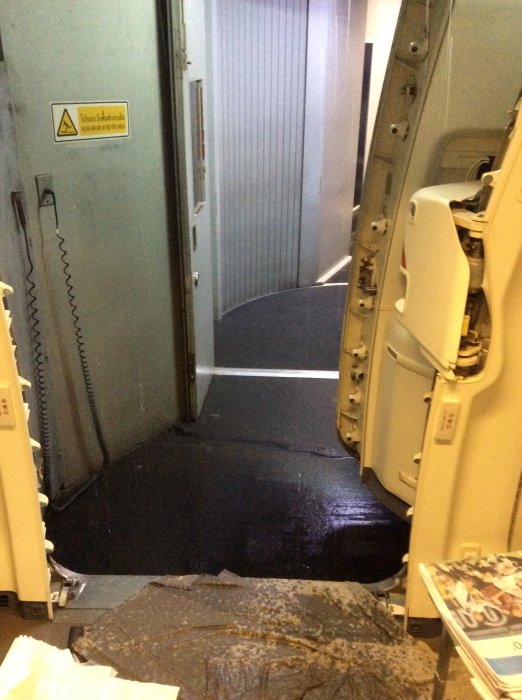 Det syns inte så tydligt hur mycket det rengnade, personalen försökte stoppa att det kom in mer rengn i kabinen med filtar