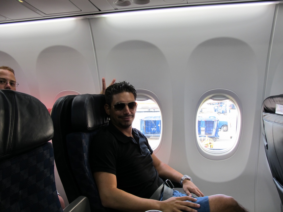 Traveller! Ja, en del blickar får han, men vadå? Detta är väl helt normalt? BYOB på en privat, chartrat flight? I alla fall, nu finns det ombordservice på flight BC707.