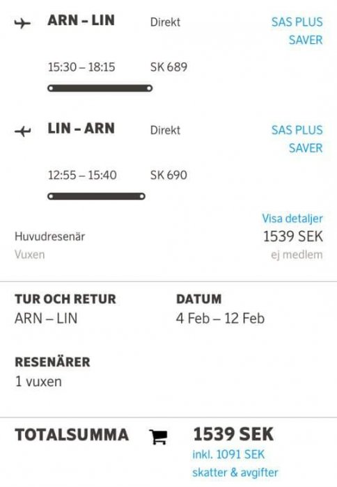 Milano går att få för ca 1000 kronor nu på kampanjen, men det gäller såklart inte alla dagar.