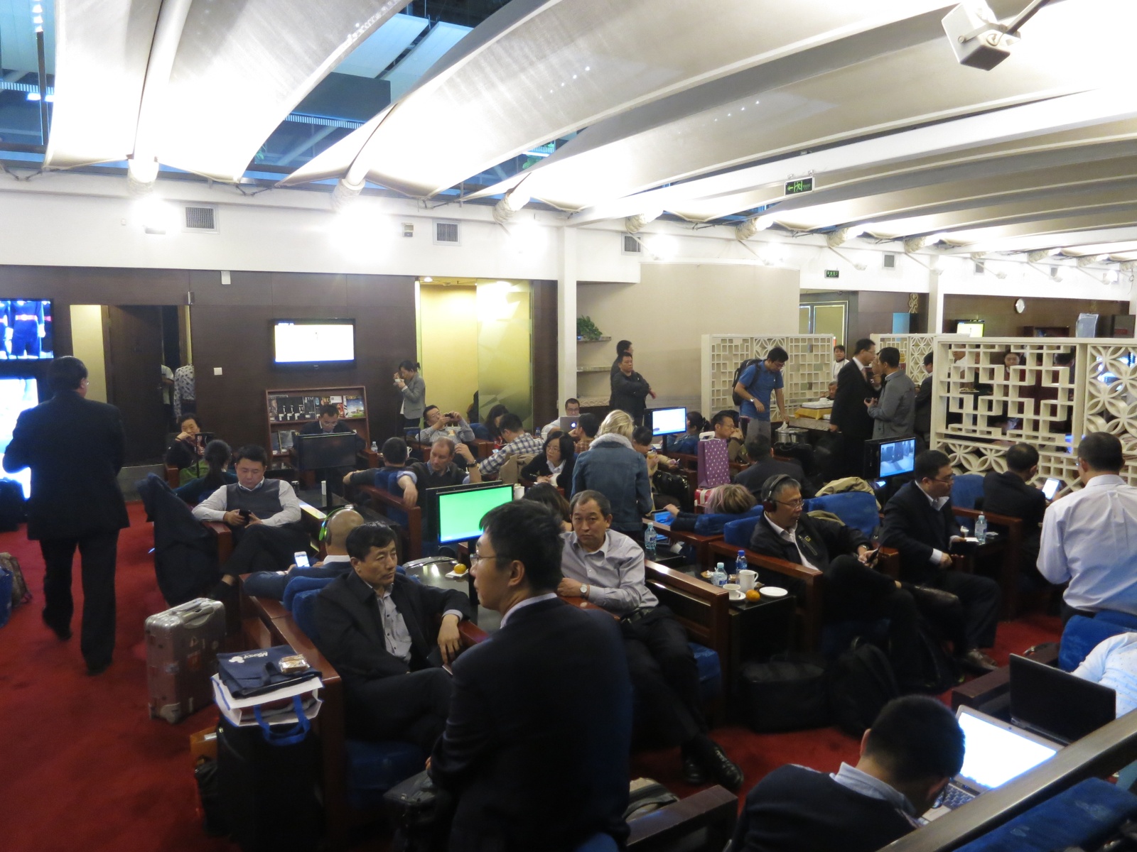 Här kan vi verkligen snacka om "överfulla" loungen. Det fanns inte någon plats att sitta i.