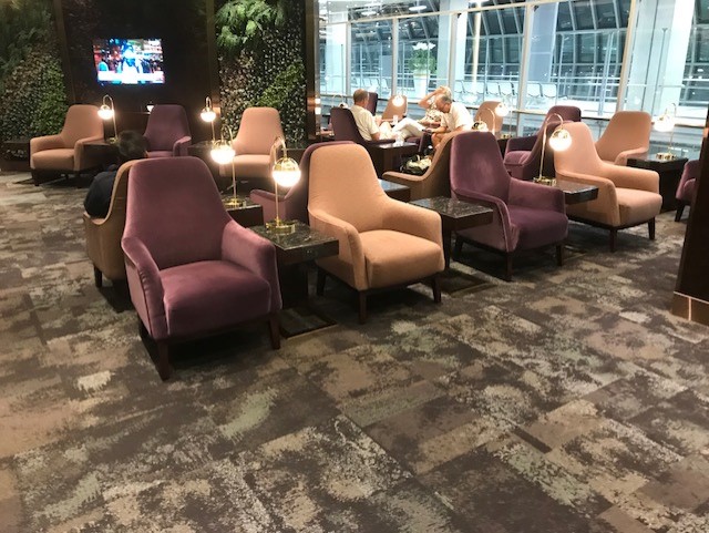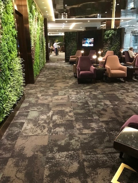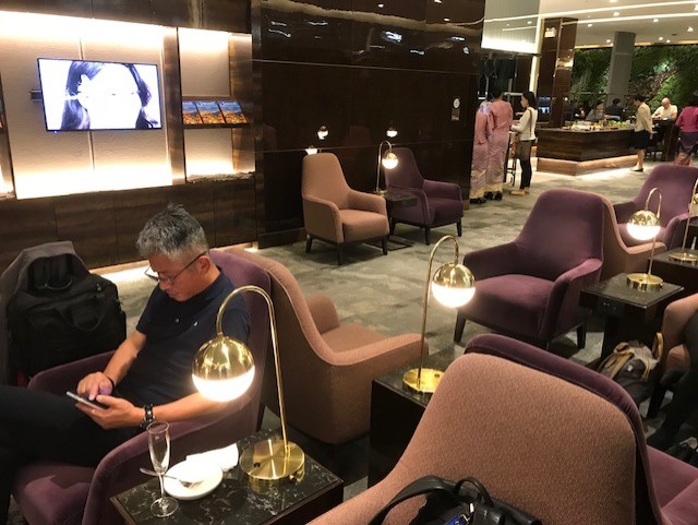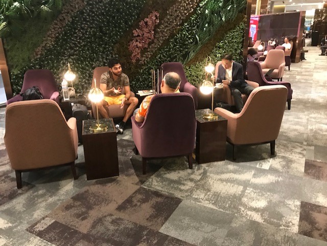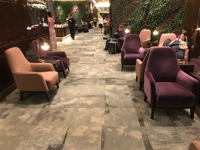 När vi var genom tänkte vi först gå till Lotus eller Orchid Loungen men vi såg många människor där så vi tog rulltrappan upp till andra våningen för att istället besöka Le Saigonnais. Loungen var ganska liten men trevligt uppbyggd med mycket växter och utsikt över plattan, den var ungefär halvfull. Det fanns en massagestol (som var upptagen av en sovande kines hela tiden vi var där).