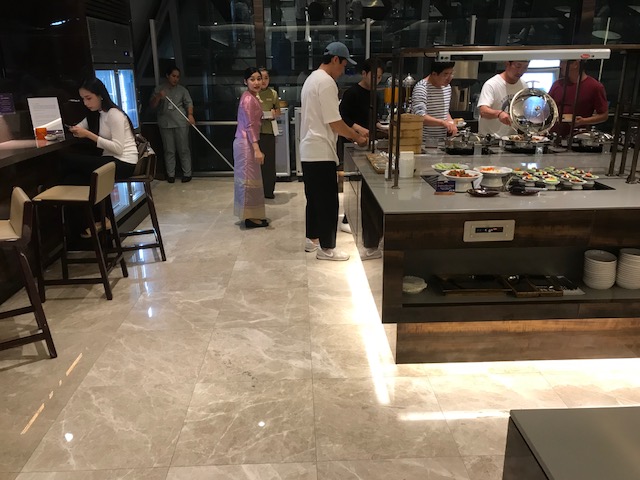 Det fanns mycket att välja på i matväg, massor av småplock och smörgåsar, frukt, pho soppa, vietnamesiska pannkakor, en del andra varma rätter samt olika snacks såsom nötter och chips. I dryckesväg fanns 3 olika Saigon-öl (Export, Special och Lager), rött och vitt vin, mousserande samt några flaskor starkfika. En helt OK lounge att spendera nån timme i.