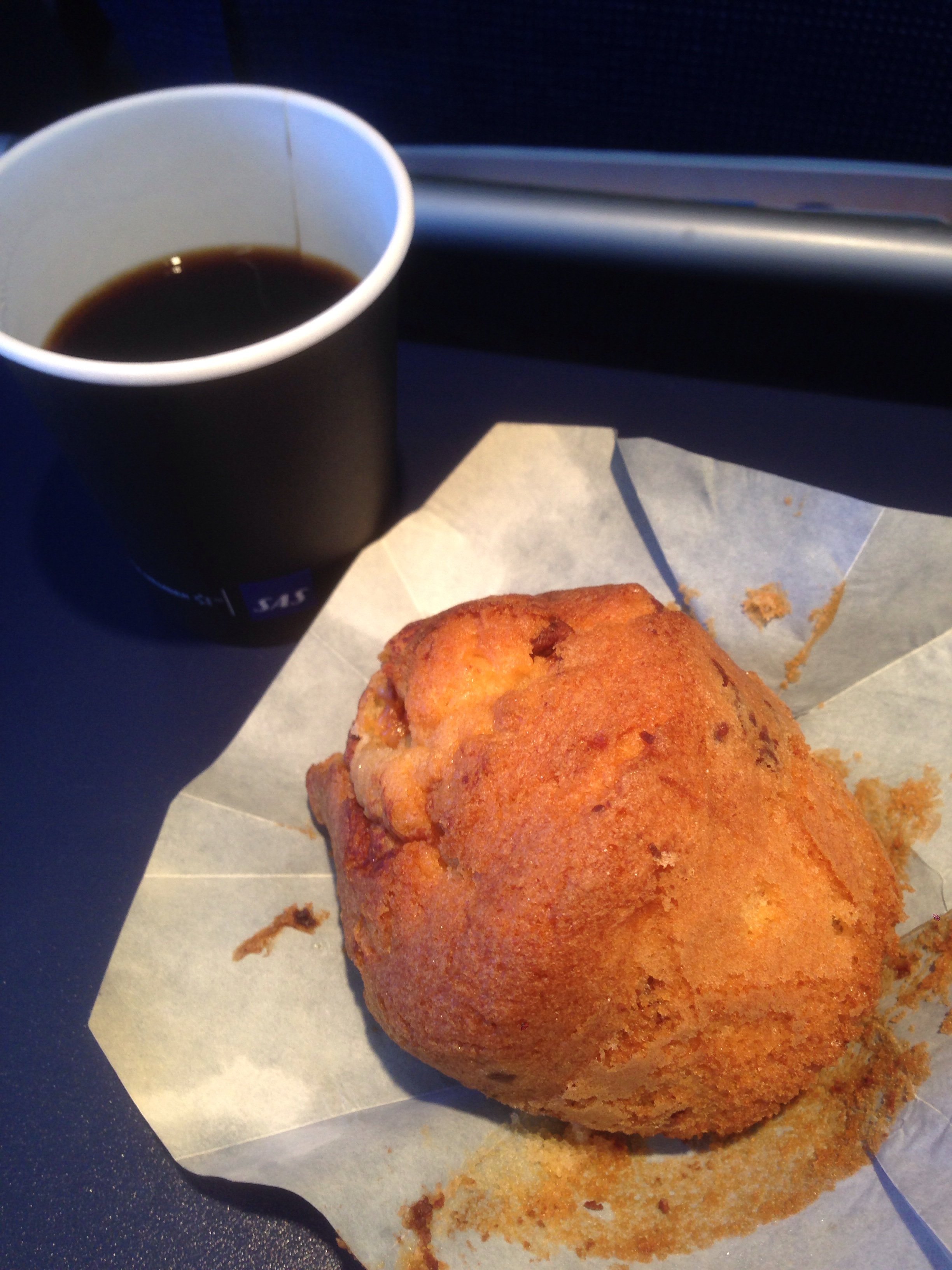 Fik du testet den nye muffin, eller sultestrejkede du i protest?Undrar om det är samma leverantör... Tyvärr så är det ju svårt att gå till McD när man sitter ombord, så jag hävdar fortfarande att SAS bör ta till baka sin chokladmuffin!