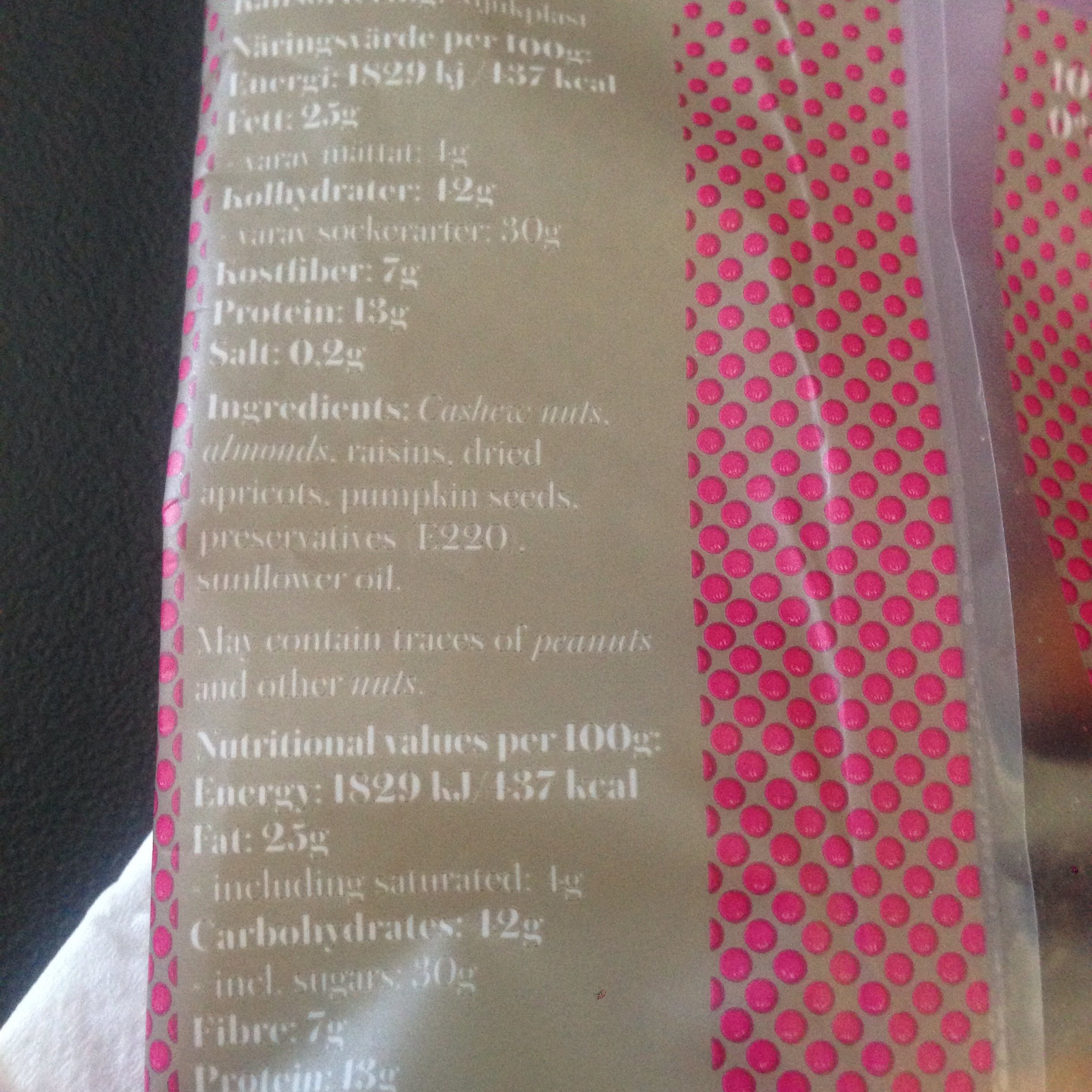 Själv tyckte jag den nya frukt- och nötblandningen var riktigt god, och dessutom en ganska rejäl storlek på påsen. Lite komiskt dock att det på baksidan av påsen står att den kan innehålla spår av nötter![]()
