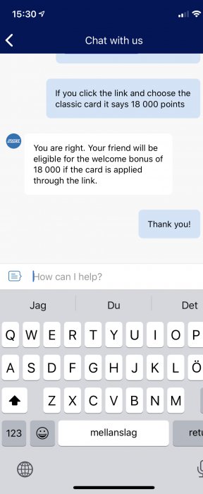 Kom på att det kan ha varit ett misstag med 18 000 poäng när man värvas efter att jag tryckt iväg min ansökan, får se om det blir några 18 000 poäng...