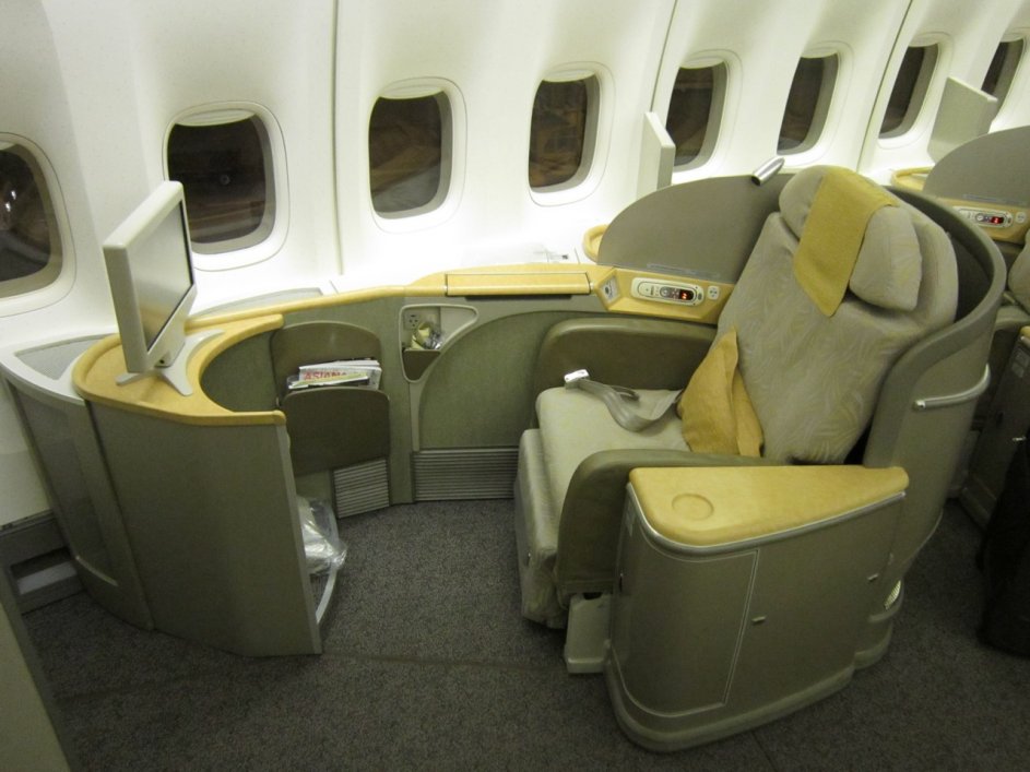 Jag bad om fönsterplats och då det var en 747 så önskade jag även att få sitta på övervåningen. Jag blev då informerad om att de har en första klass i nosen och då de inte erbjuder någon första klass så kan jag som business classpassagerare sitta där. Övervåning blev plötsligt mindre viktigt och jag fick 02F och livet kändes lite bättre genast.