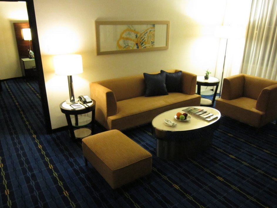 Återigen utan incheckat bagage ger jag mig direkt ut i ankomsthallen och bort till Marriotts hotelldisk. Några minuter senare så kan jag promenera ner en våning till den minibuss som är framkörd och som tar mig till Marriott SkyCity. De är vänliga nog att ge mig en uppgradering till svit och det är ju alltid tacksamt även om jag tyvärr inte har tid att vistas så mycket i den. Det blir en tandborstning, 5 simmars sömn, en dusch och sen bär det av igen.