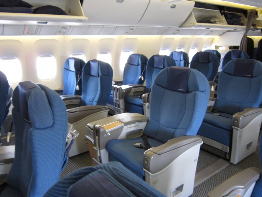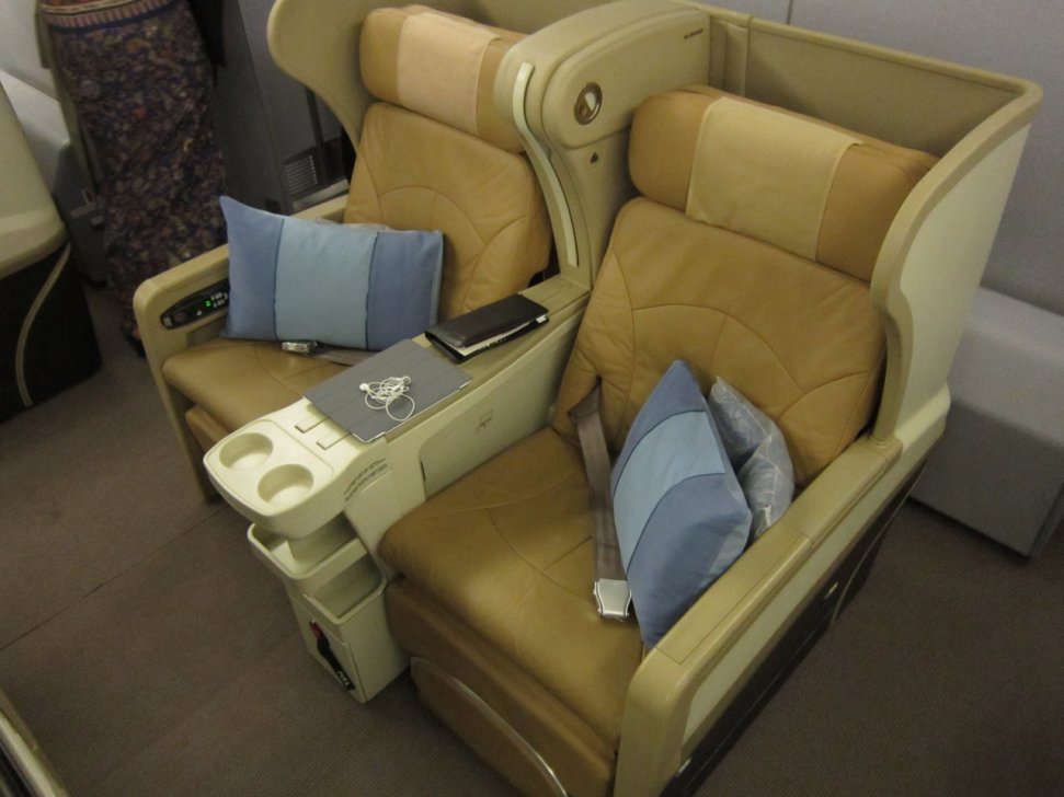 När jag sitter där och väntar på maten kollar jag mig omkring lite granna. Det skall man som arbetandes med bilinteriör inte göra. När man granskar stolen får denna ett betyg under all kritik när det gäller fit n finish, kulörmatchning etc. Man sitter ju bara i en av världens bästa business class, vad kan man begära?