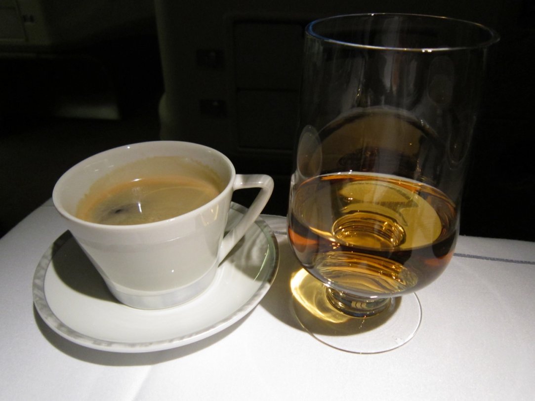 Den sedvanliga rutinen drar igång: ta några kort, packa ur iPad, hörlurar etc, häng upp kavajen, sätta sig ner och få champagne vilken var av samma sort som tidigare SQ-flygning. Sen kom en tidning och även ett magasin, Business traveller. Jag har på denna flygning gångplats längst bak i mittraden.