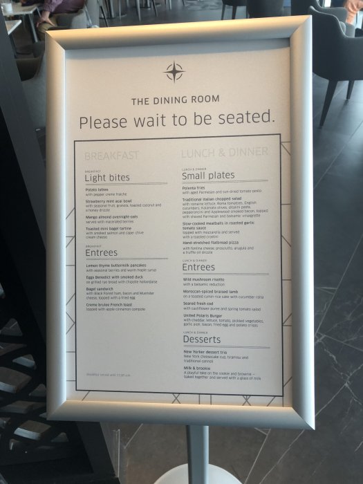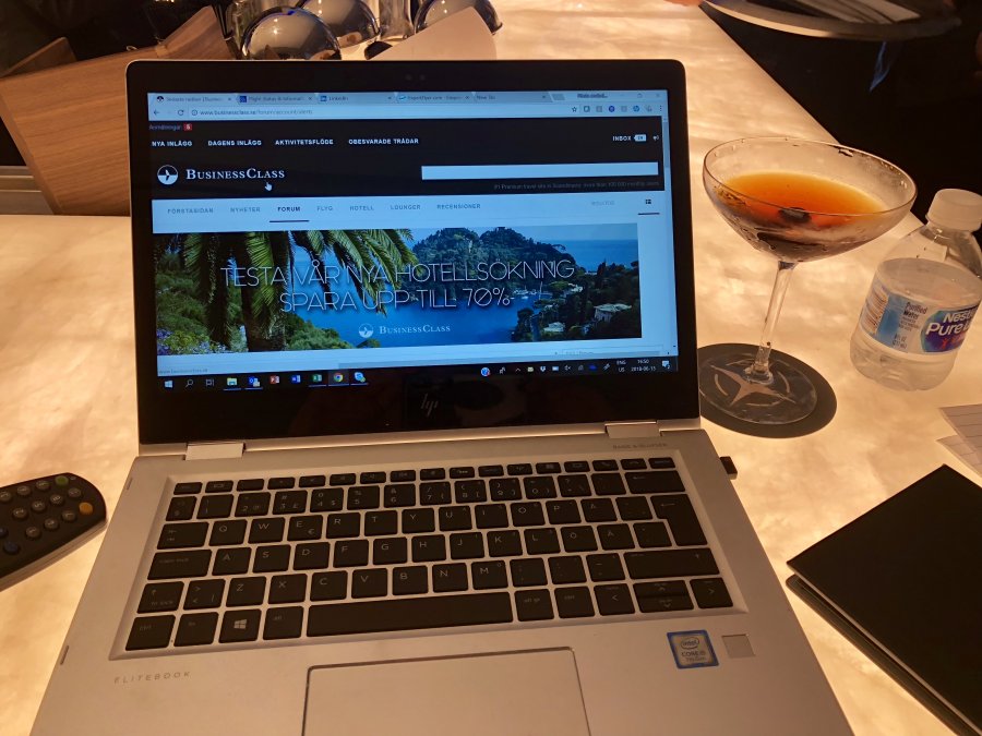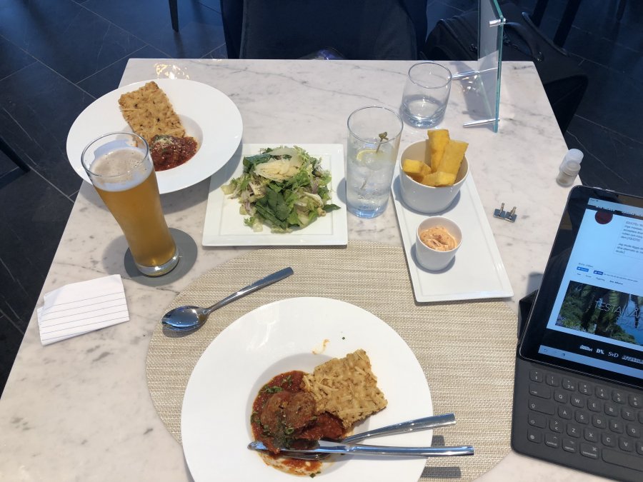 Jag gratulerade personalen som var märkbart stolta av den nya loungen. Jag fick själv utmärkt service (som vanligt) för att försöka boka om från UA960 till UA69 som visade sig inte gå till slut. Jag testade baren (självklart) samt restaurangen. Deras signature cocktails var precis sånt som jag gillar, och jag skippade skumpa för cocktails. Egna versioner av Manhattan och Negroni vinner mig varje gång.