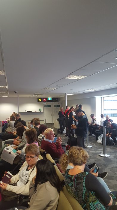Vi tar en tur runt terminalen i väntan på boarding som startar 20 minuter sent.