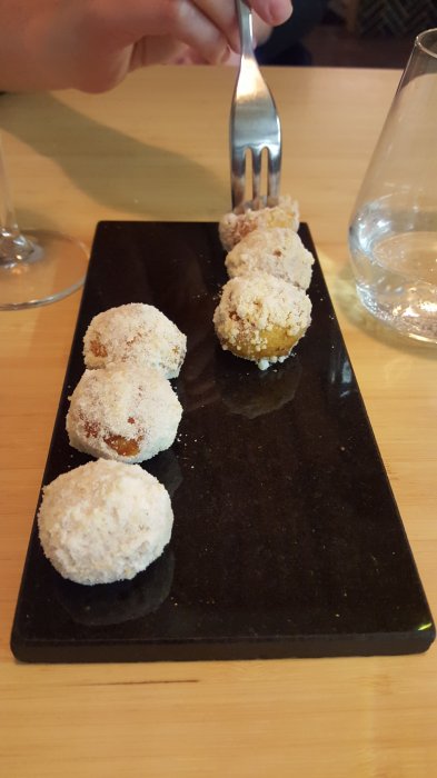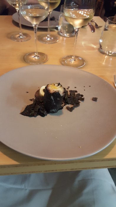 Efter en dryg timme i luften serveras förrätten från vagn.