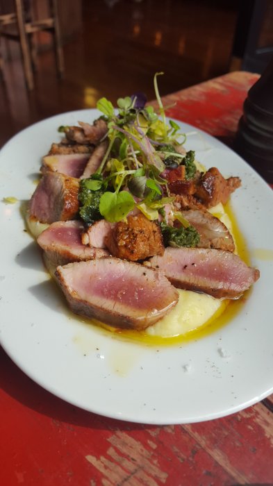 Den varma maten är en mix av indiskt, italienskt och Nya Zeeländskt (kött). Det finns även meze samt lite ostar.