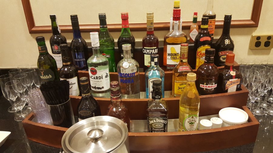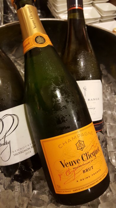 I loungen är det gula änkan som gäller i champagne-väg - och det kan vi stå ut med. Det finns så klart även diverse starksprit.