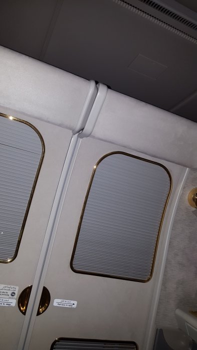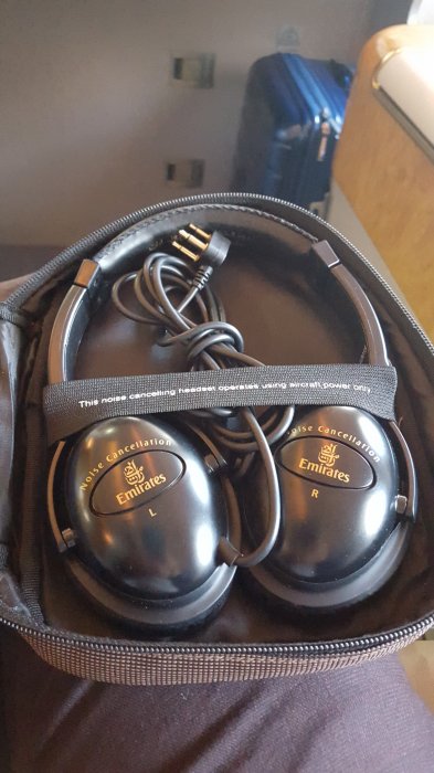 Vi börjar taxa ut och en FA dyker upp i dörren. Jag är övertygad om att hon tänker knycka min dompa. Haha, självklart inte - hon vill fylla på den. Skrev jag att jag älskar Emirates F?