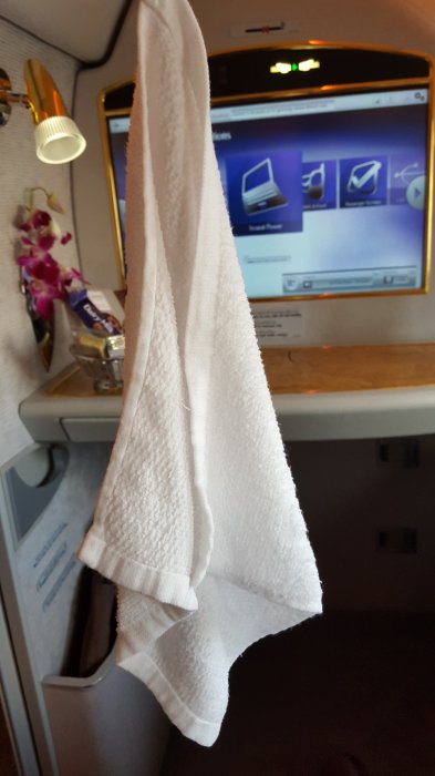 Får även en varm handduk som håller högre klass än tidigare flight.