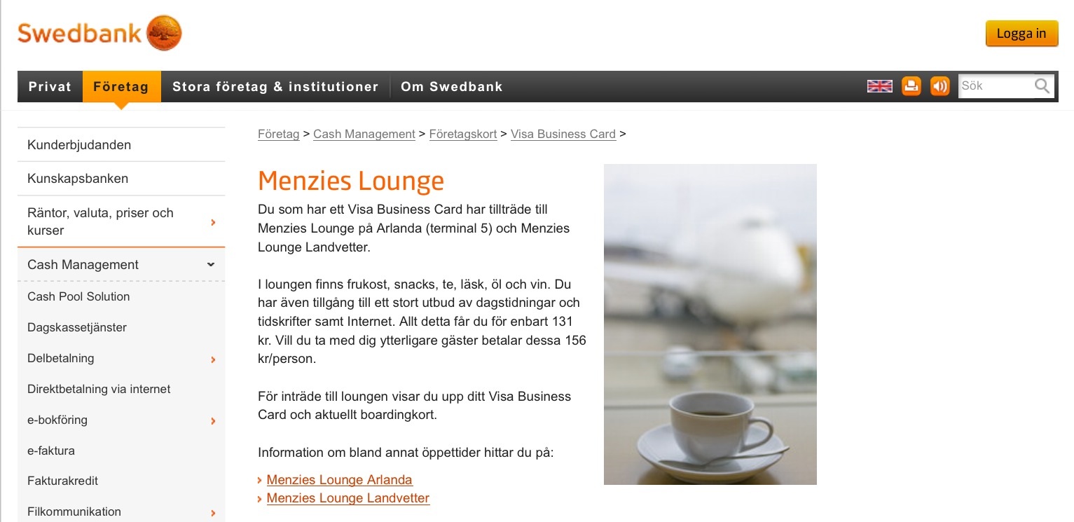 Noterade att om man klickade sig vidare från Swedbank så hamnar man på BusinessClass.se (!)