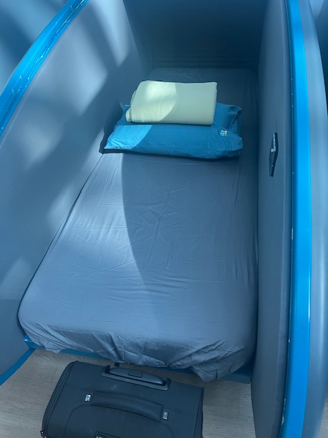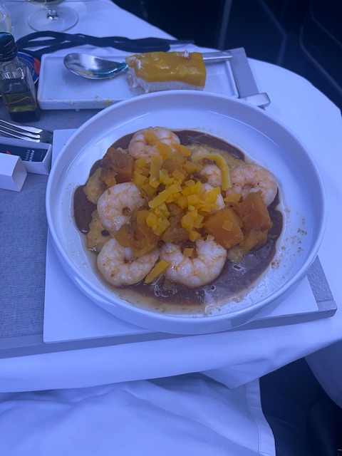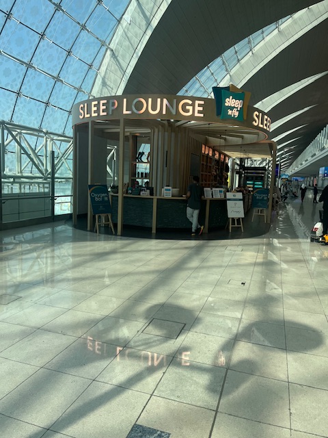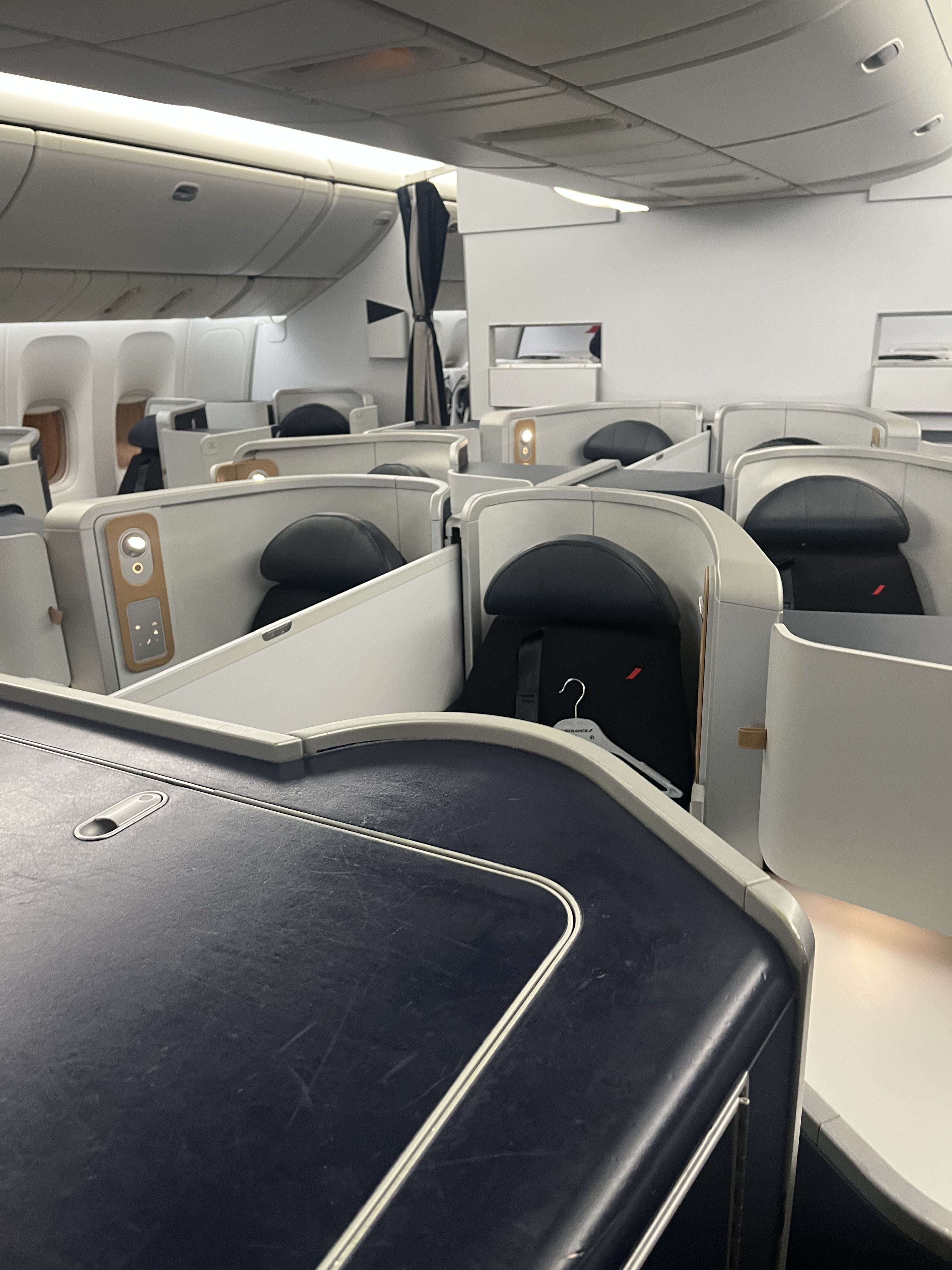 Boarding 22.15, första bubblet 22.45, sen ett till före den rejäla middagen serverades strax före midnatt. Bra service. Somnade kanske 01.00 och stördes av turbulens. Upp igen kl 05.00 för frukost. Kom inte fram utvilad men hittade ett ställe att sova och duscha på. Nu i loungen och laddar för A380-800. Enl Nonstop Dan som har min längd är det extra bra att sitta mot en vägg i ekonomiklass så det har jag valt.