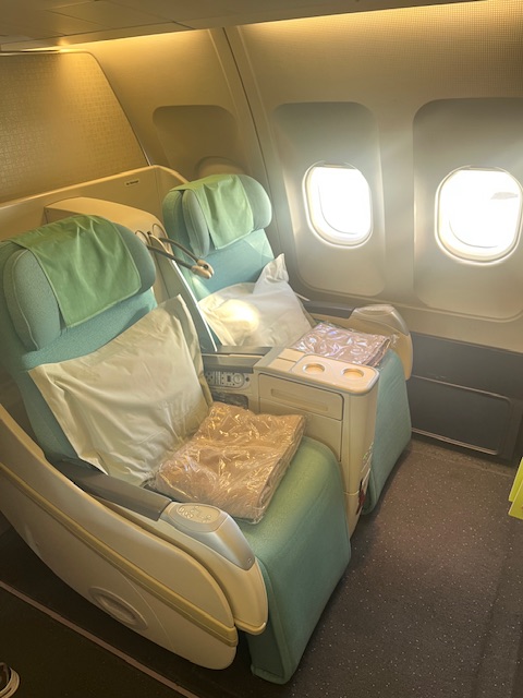 Då sitter jag på plats, bästa stolen på länge. Verkligen skönt. Första raden i business är en egen liten minikupe.
