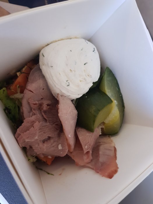 Fick likadan idag på CPH-DUB... var sådär, köttet och krämen okay men det andra var bara konstigt...